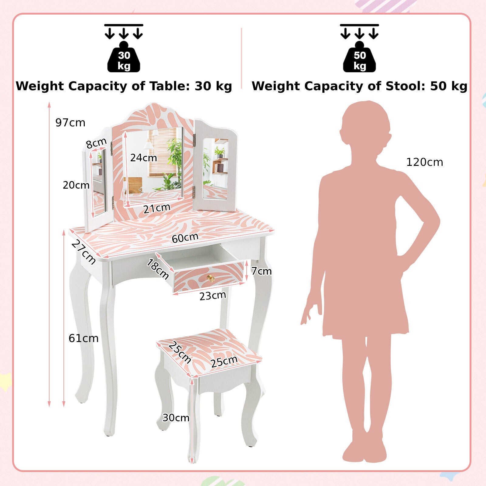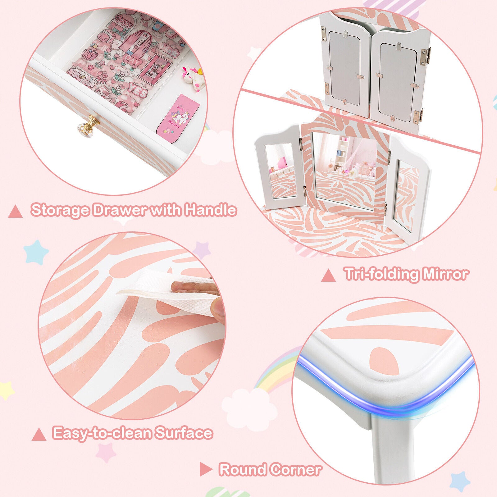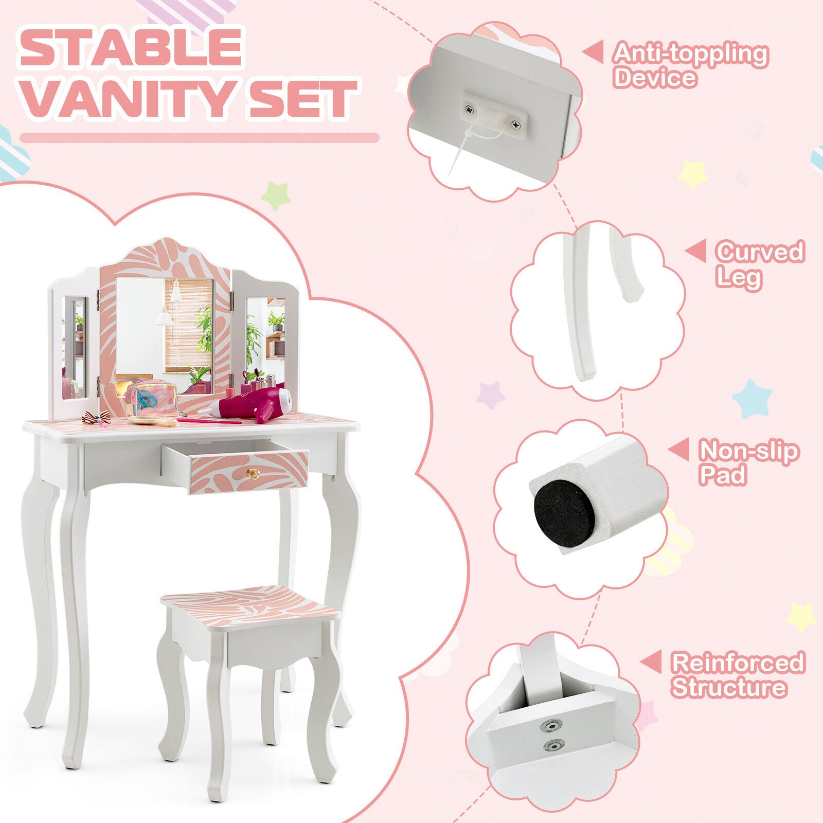 2-in-1 Kids Vanity Table Set Princess Pretend Play Dressing Table Writing Desk