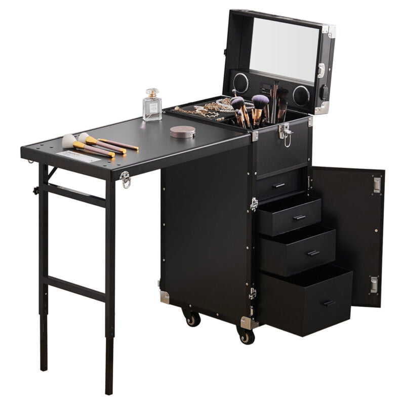 Expandable, Folding, Handle, Mirror, With Lock, With Drawers, With Wheels, With Bluetooth Speaker