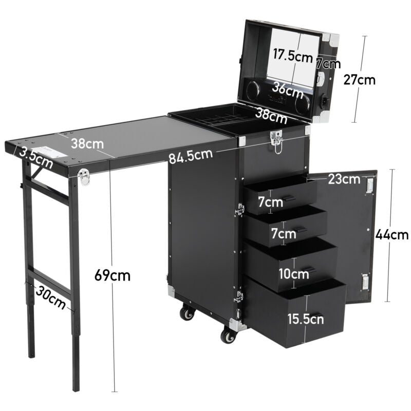 2 IN 1 Makeup Station Trolley Case Extendable Dressing Table Studio Cosmetic Box
