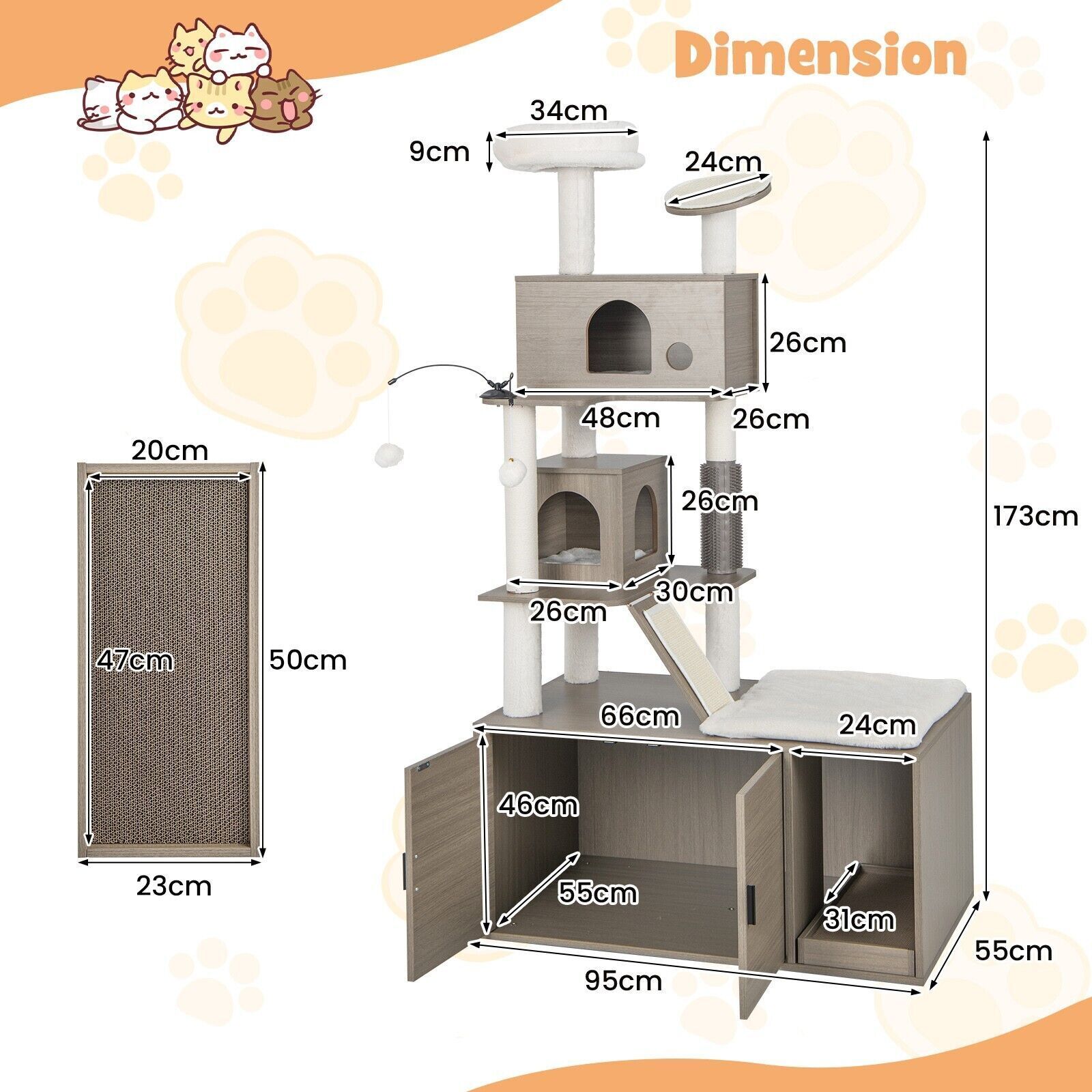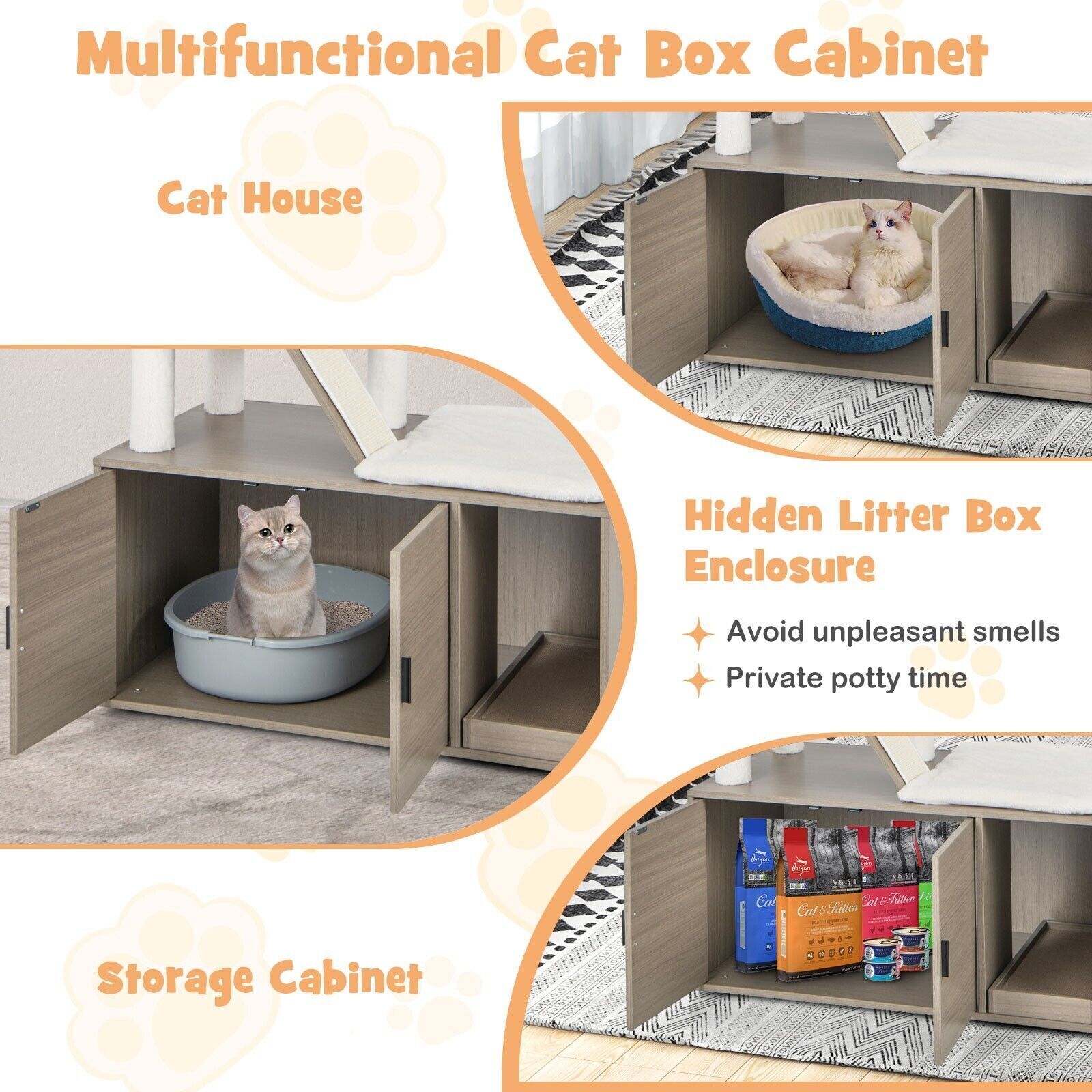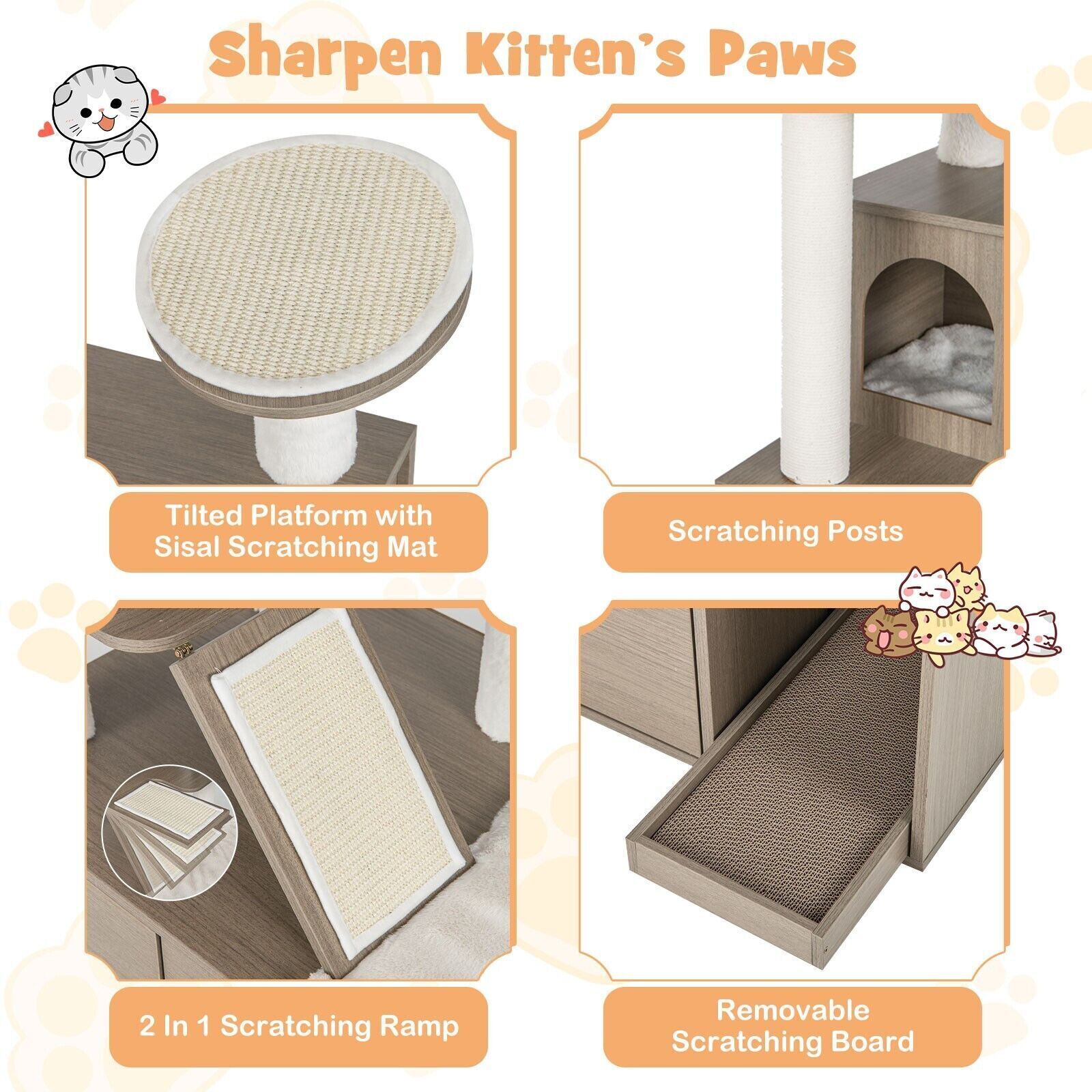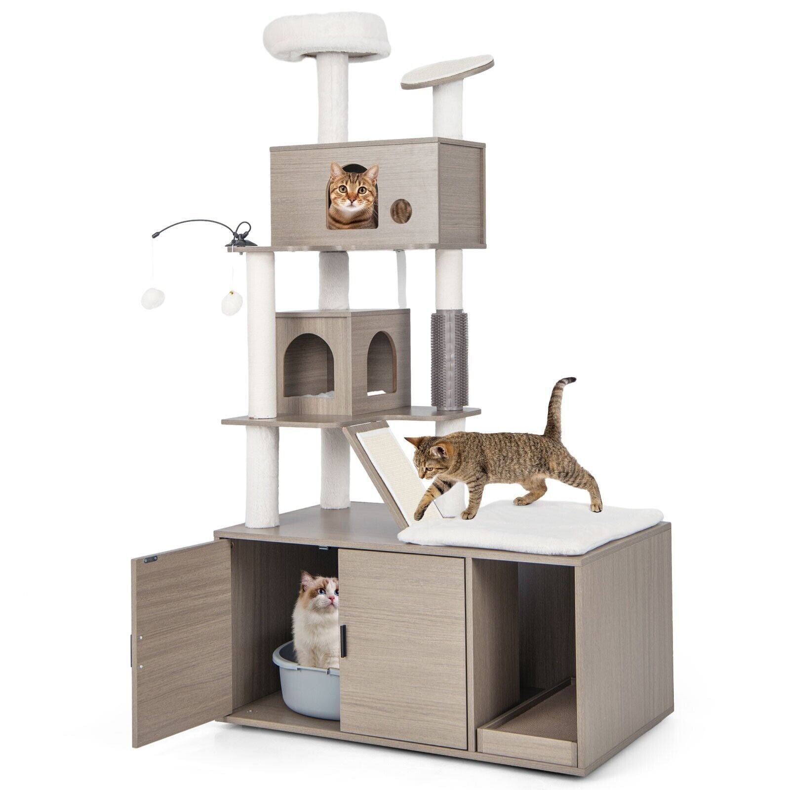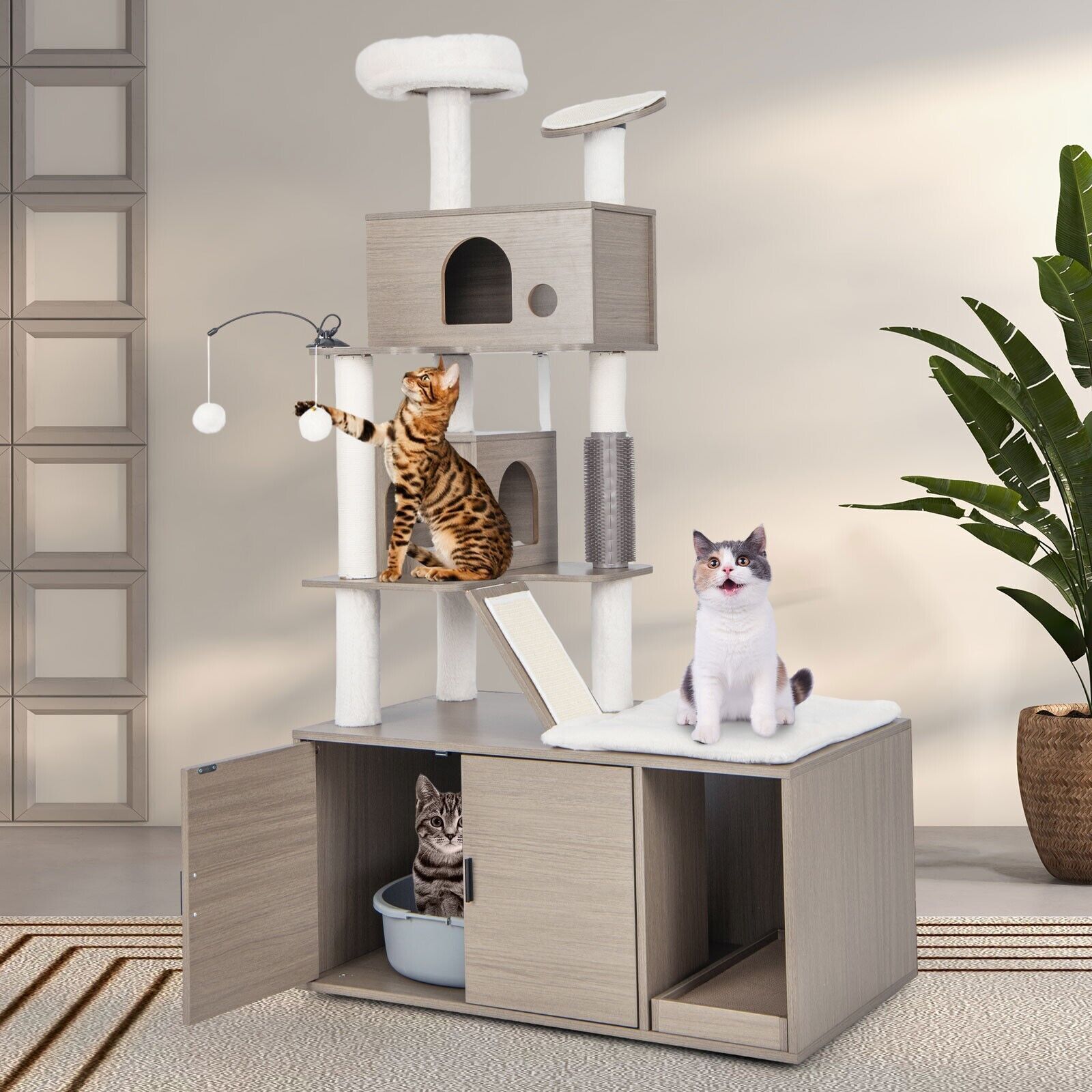 2-in-1 Modern Cat Tree Tower Cat Litter Box Enclosure W/ Scratching Board