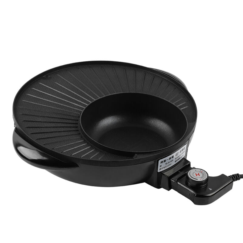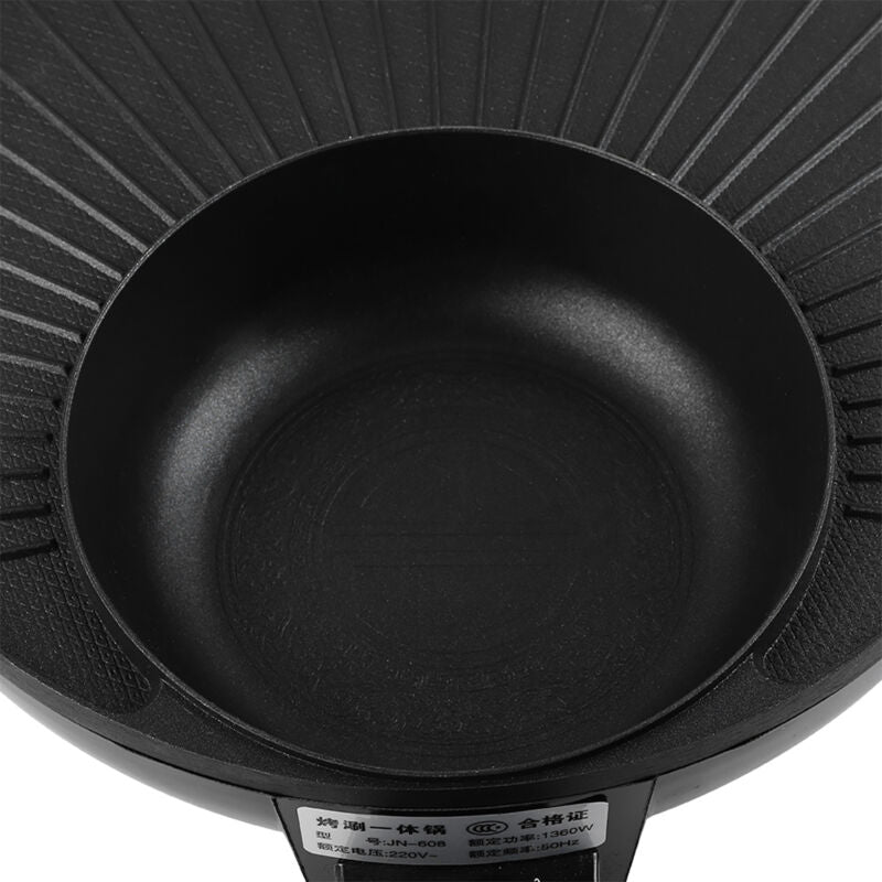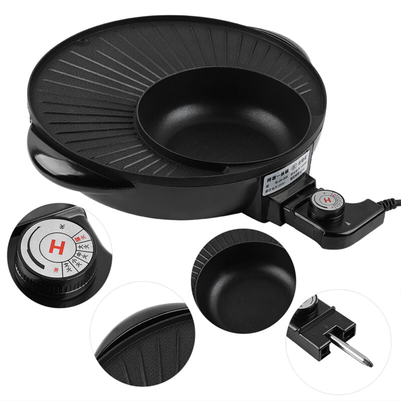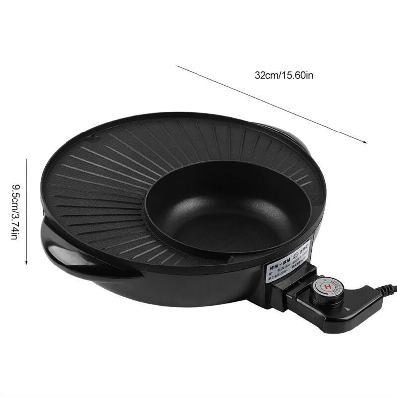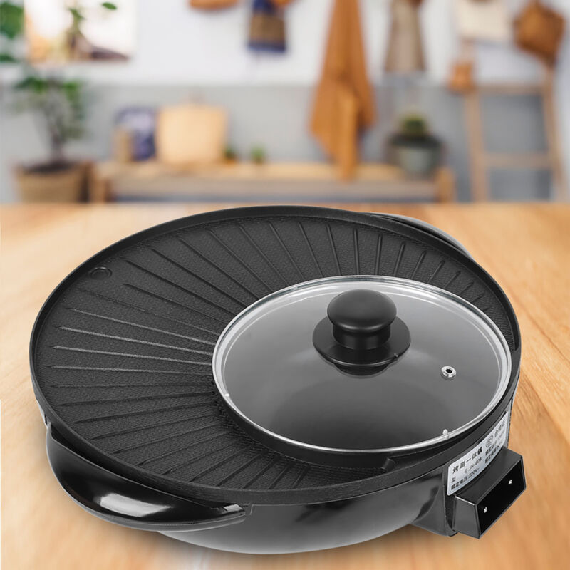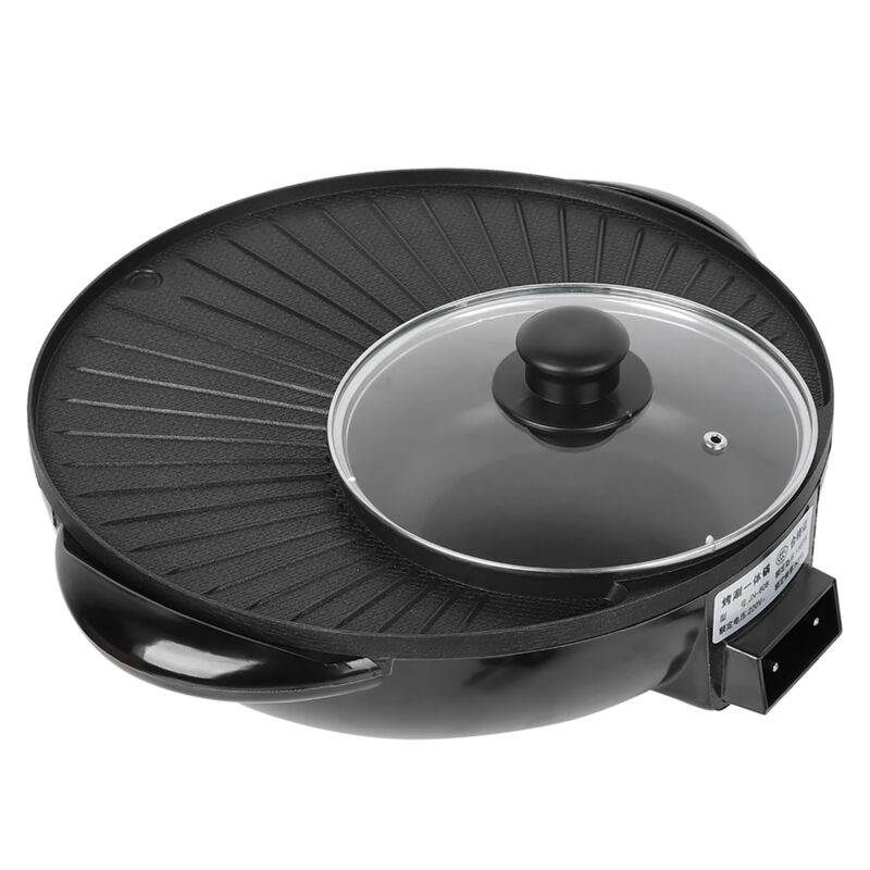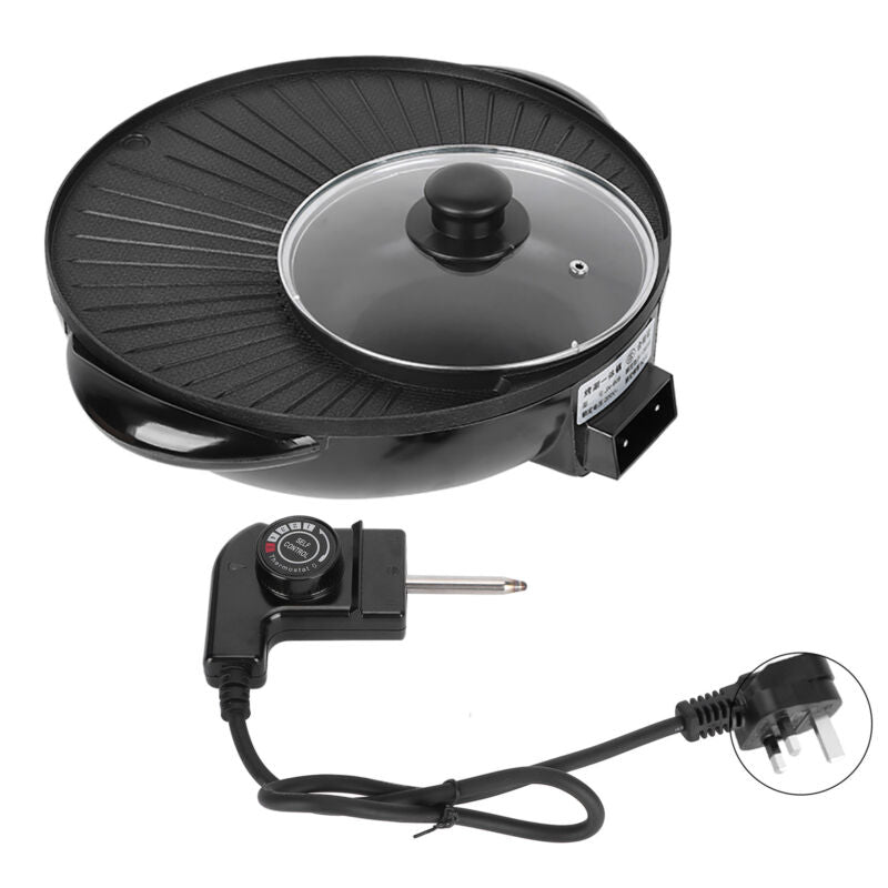 2 in 1 Non stick Electric Grill Hot Pot with Glass Lid BBQ Oven Cooking Kitchen
