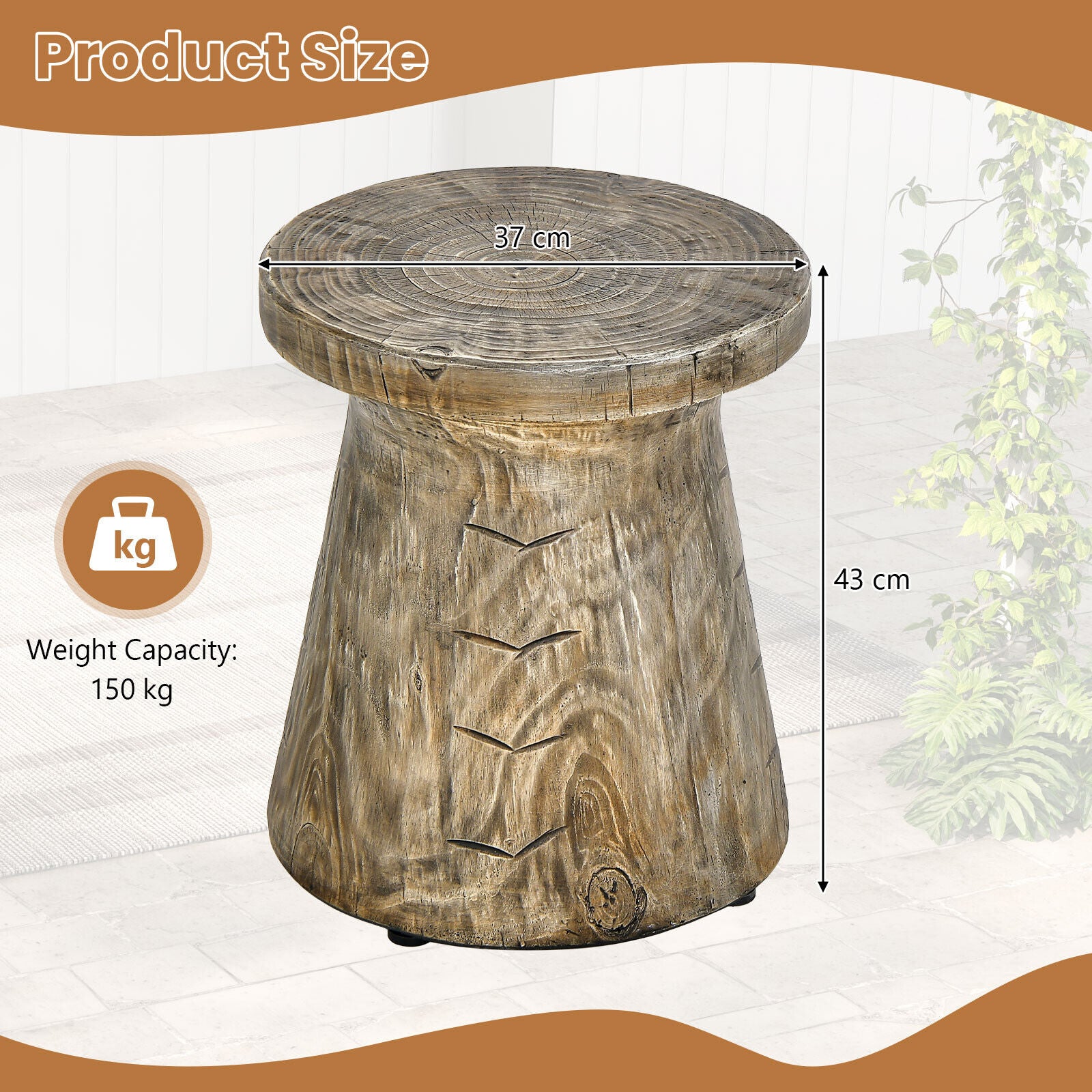 2-in-1 Outdoor Rock Round Side Table Patio Stool Coffee Table Weather Resistant
