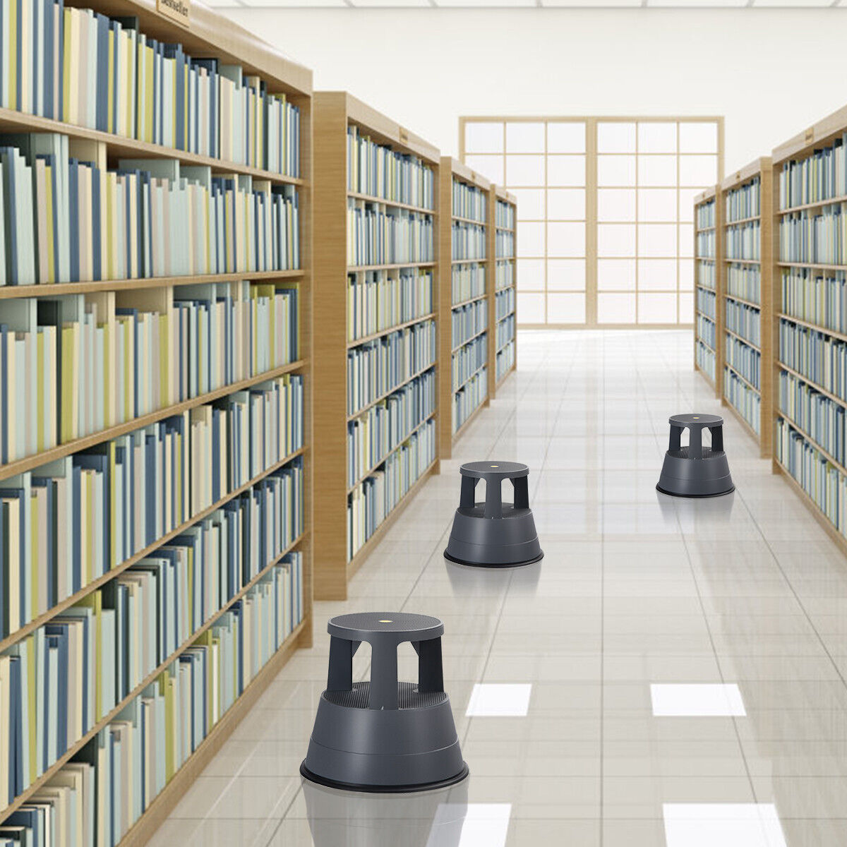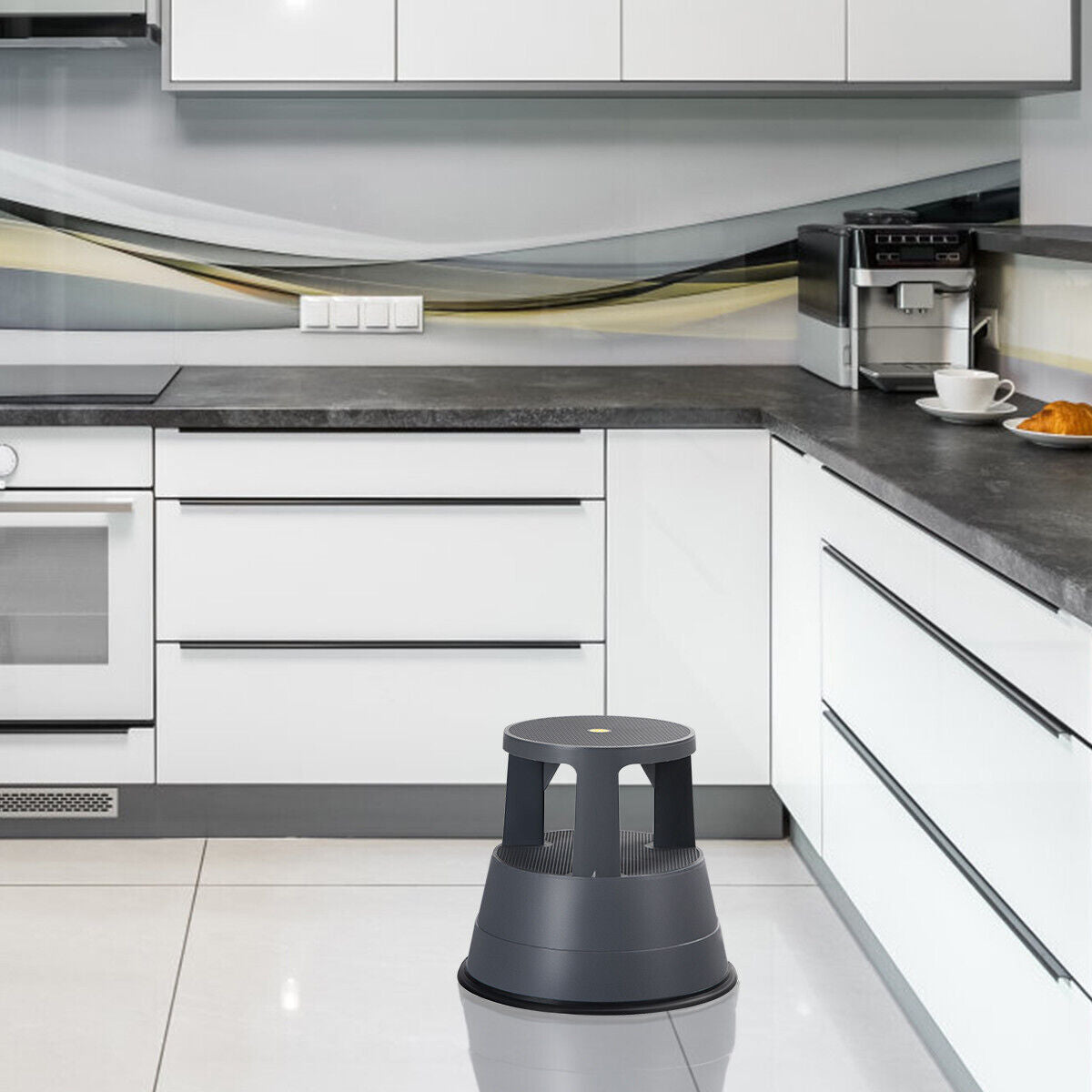 2-In-1 Step Stool Round Roller Ladder Stool w/Casters & Non-slip Rubber Band