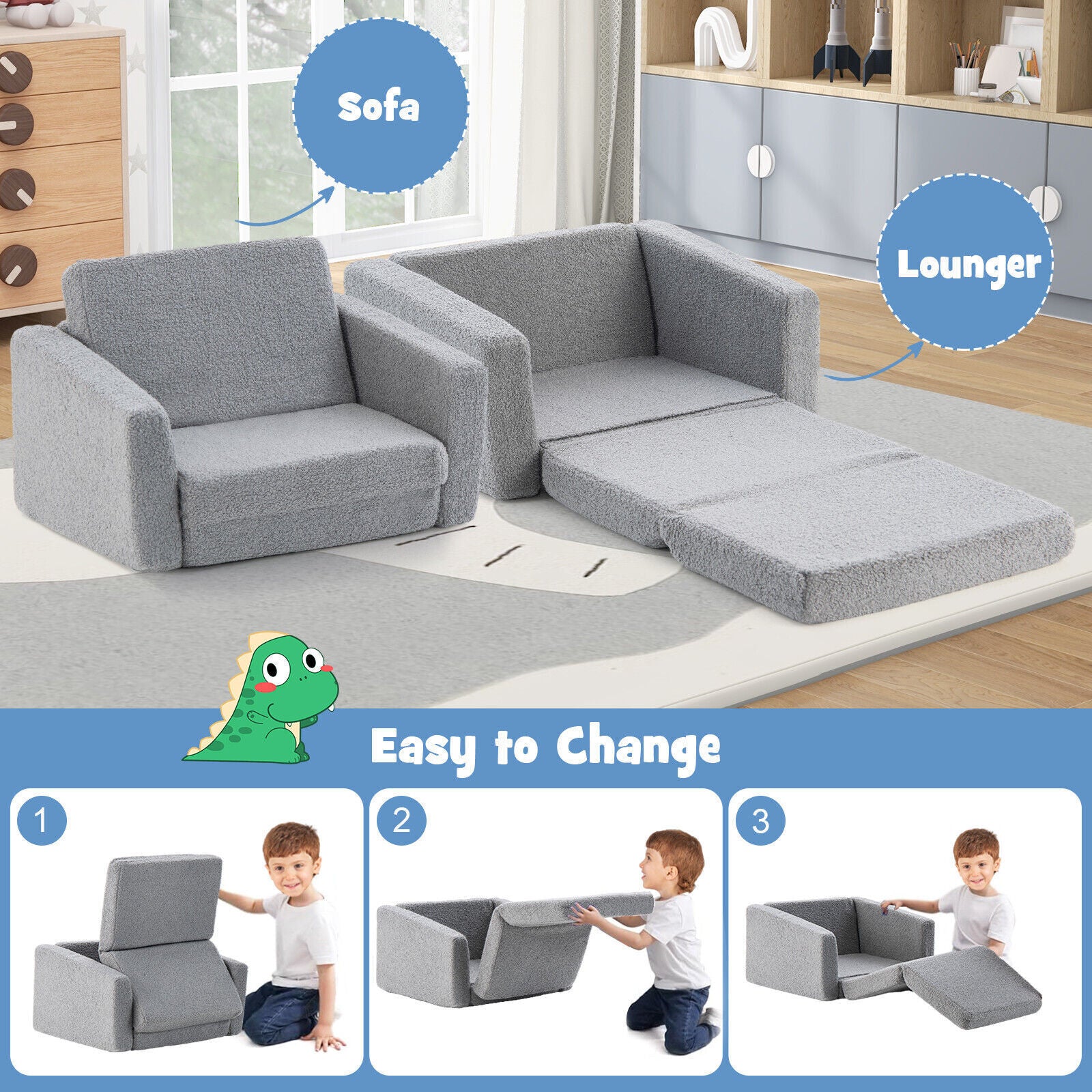 2-in-1 Toddler Fold out Couch Kids Single Convertible Sofa to Lounger Couch