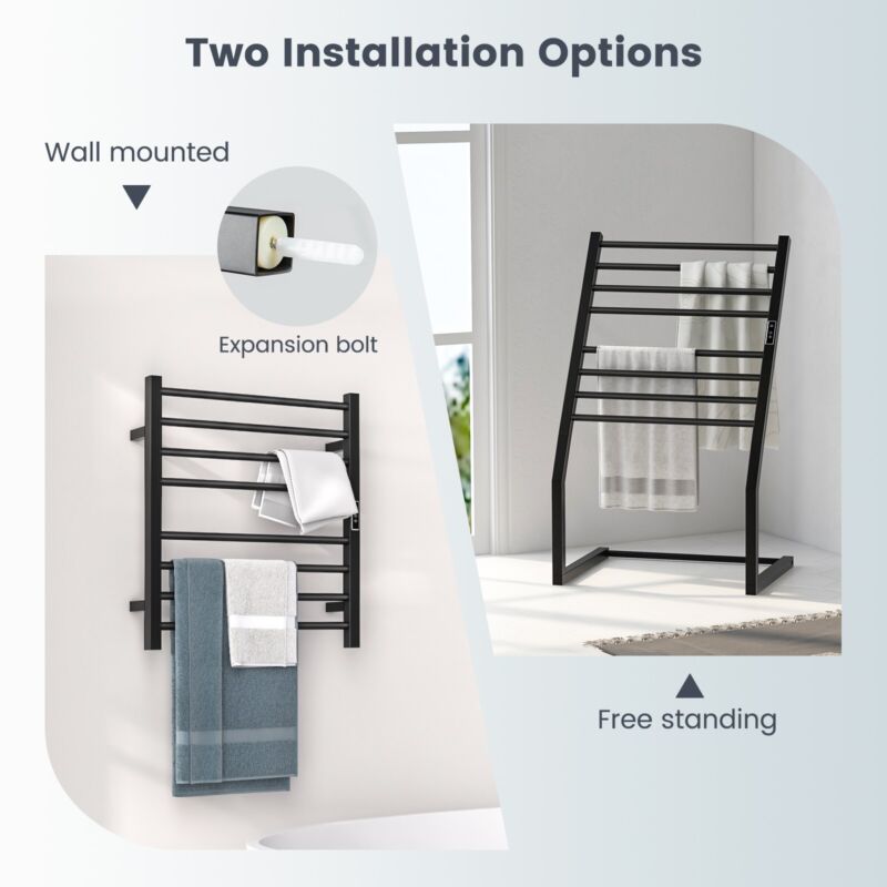 2-in-1 Towel Warmer Rack Freestanding & Wall Mounted Towel Heater w/ LED Display