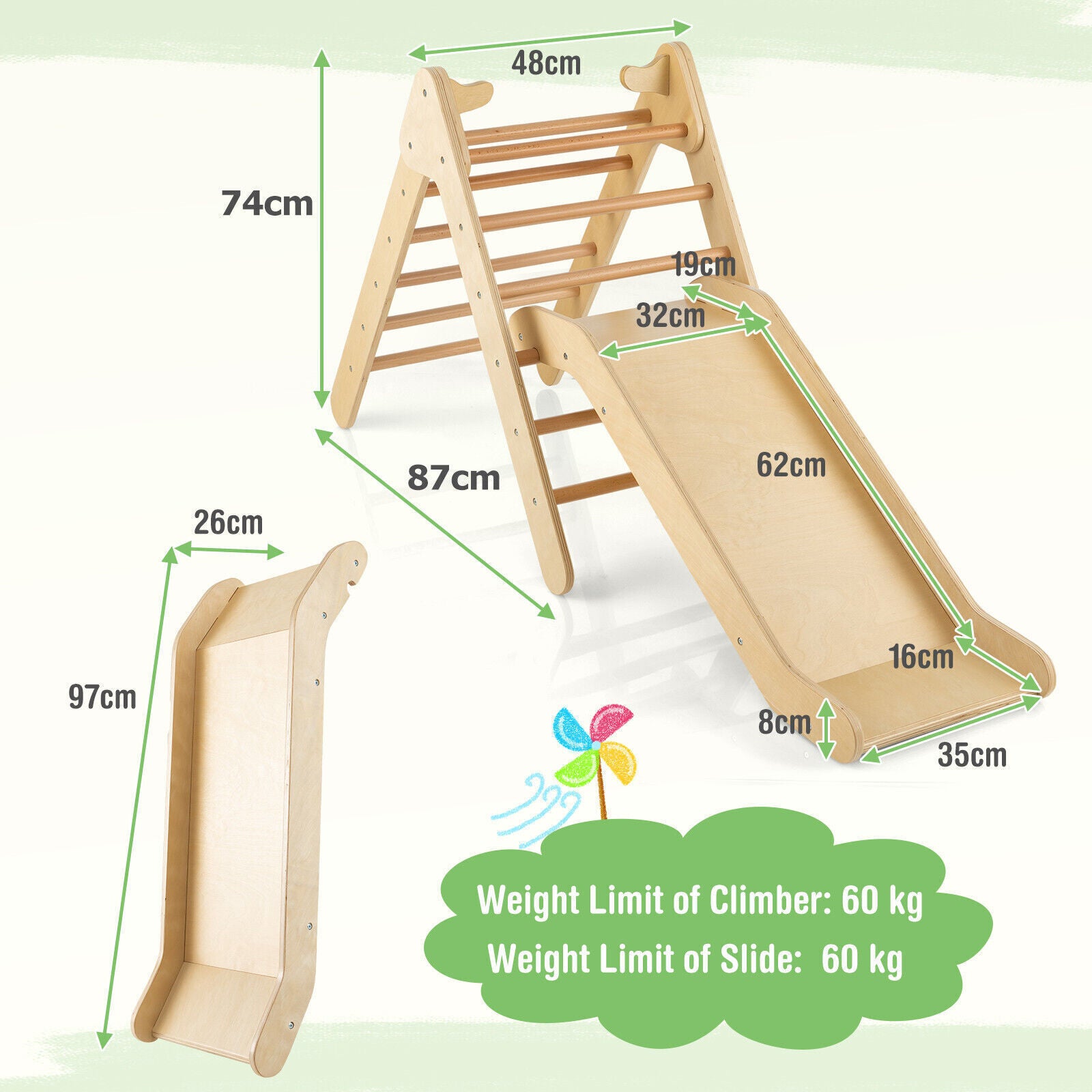 2-in-1 Triangle Climbing Set Kids indoor Wooden Triangle Climber Toy w/ slide