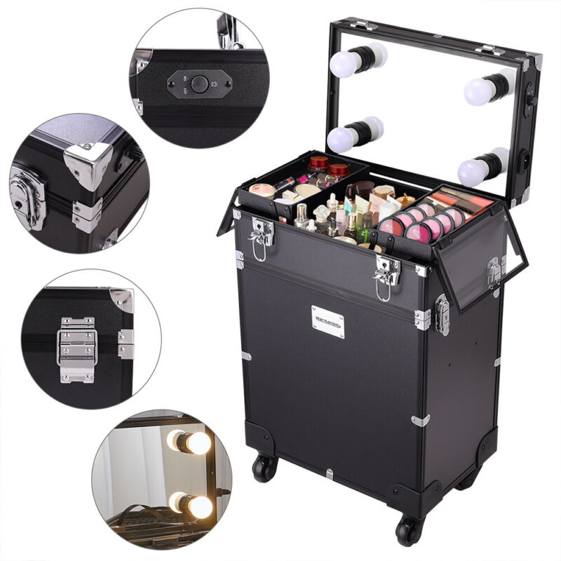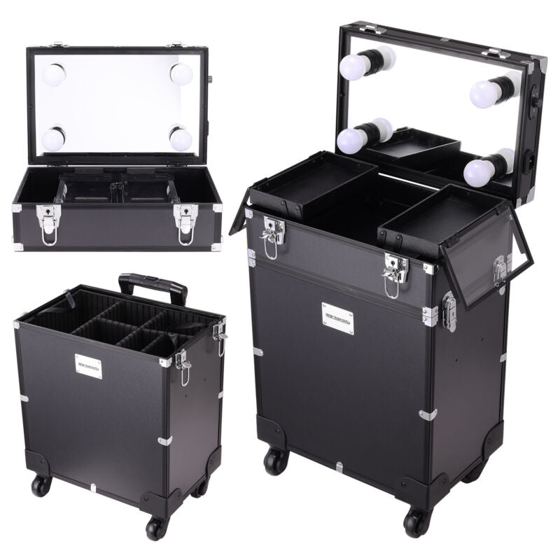 2 in 1 Trolley Case Professional Makeup Cosmetic Hairdressing Vanity on Wheels