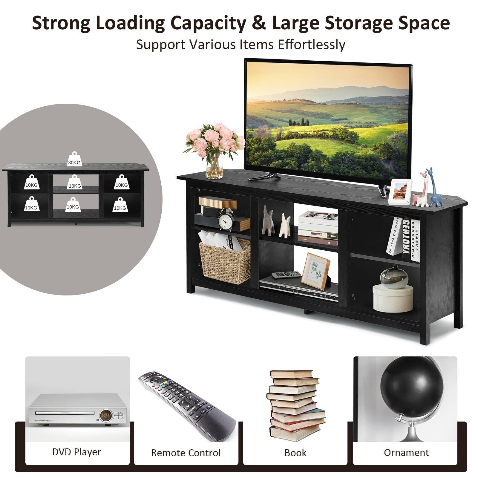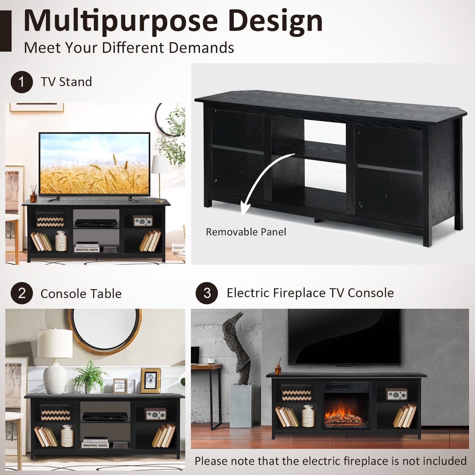 2-in-1 TV Stand for TVs up to 65 Inches Wooden TV Console Table Media Canter