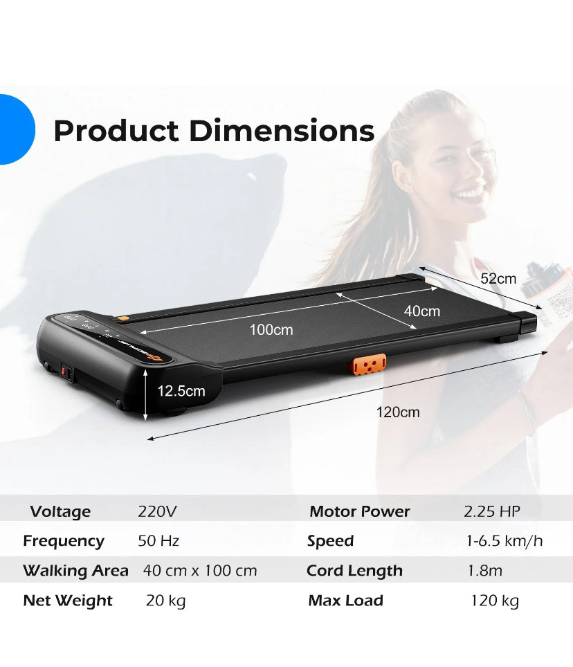 2-in-1 Walking Pad Treadmill Under Desk Running Machine LED Panel W/ 12 Programs