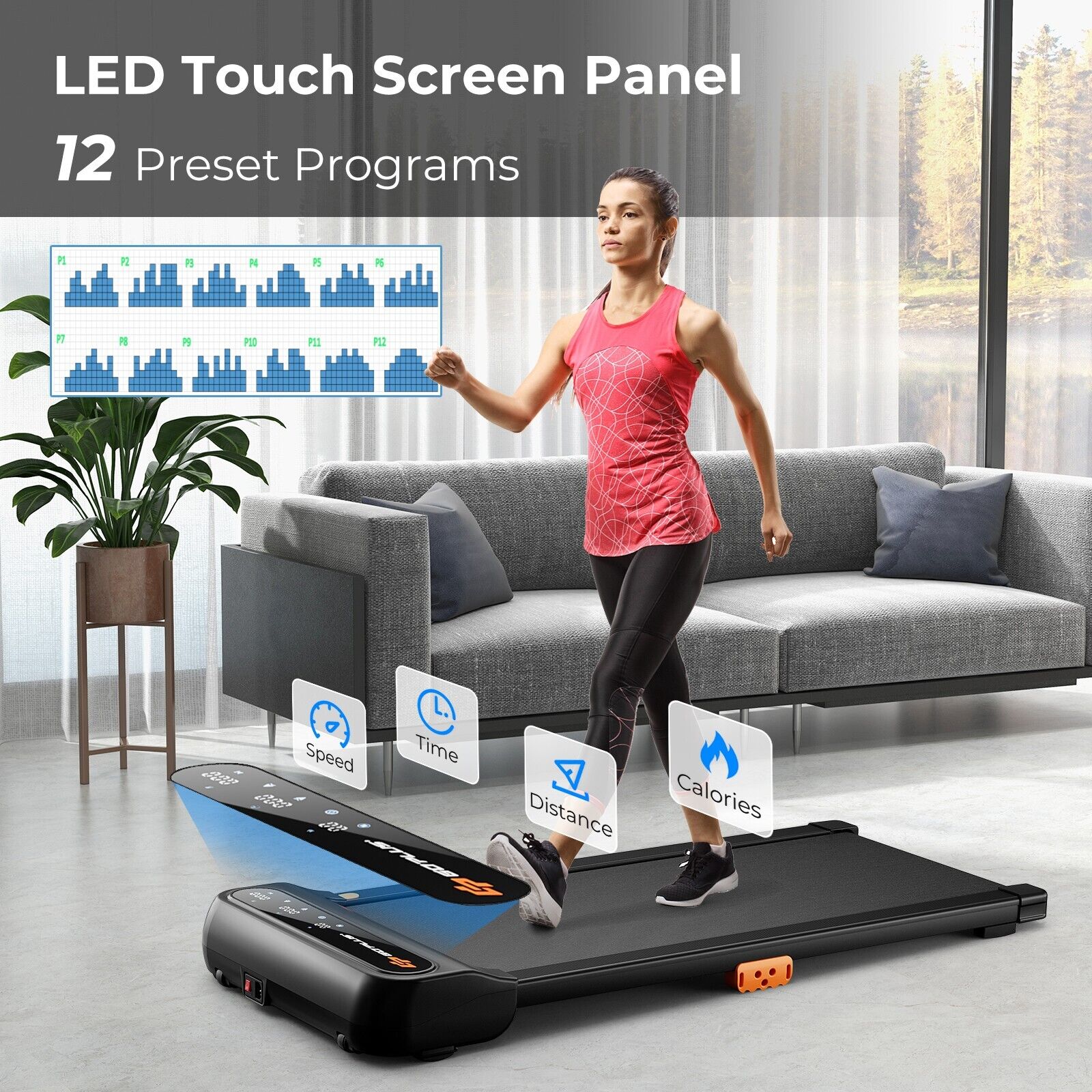 2-in-1 Walking Pad Treadmill Under Desk Running Machine LED Panel W/ 12 Programs