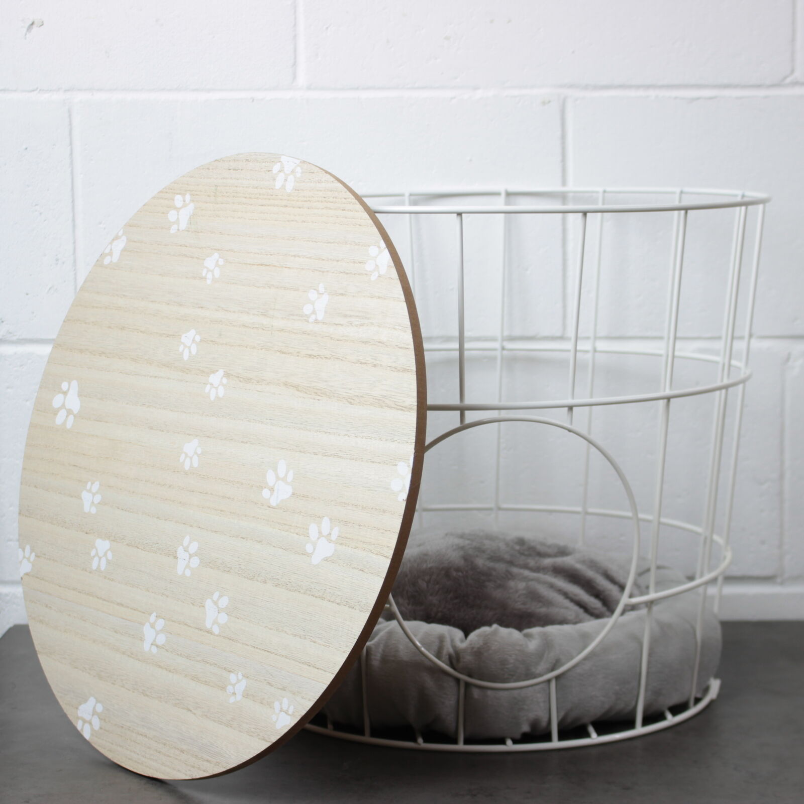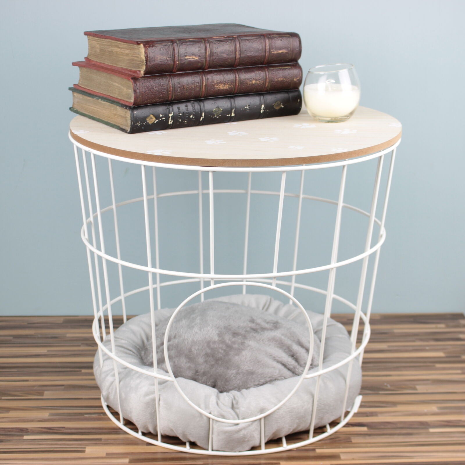 2 in 1 White Metal Side End Table Pet Cave Bed Storage Removable Top Basket