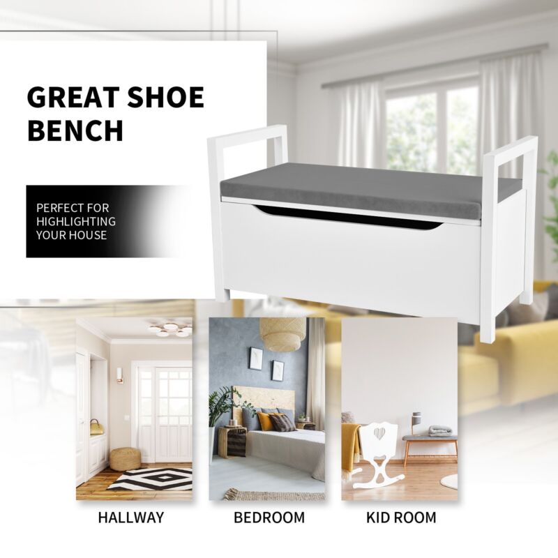 2 IN1 Wooden Shoe changing Bench Shoe Storage Cabinet Organizer Padded Seat