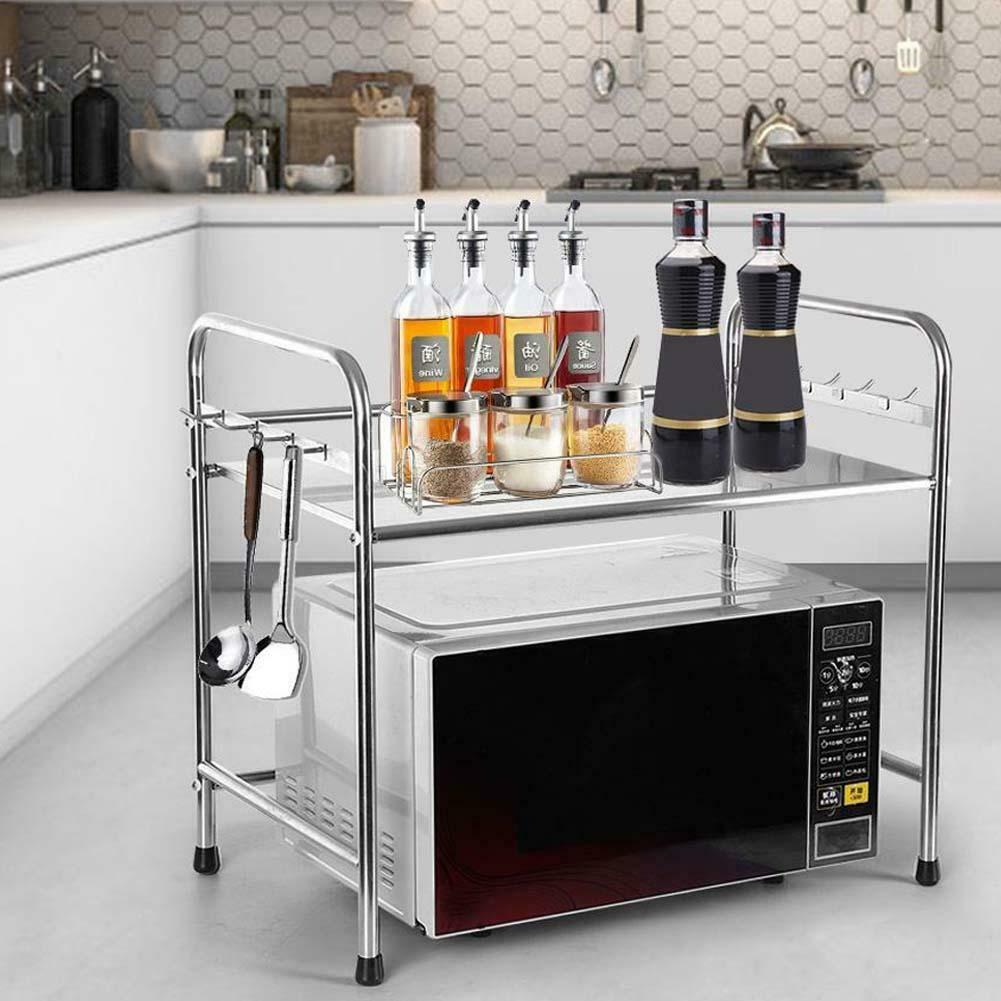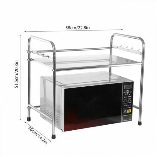 2 Layer Stainless Steel Microwave Oven Rack Stand Storage Holder Kitchen Shelf