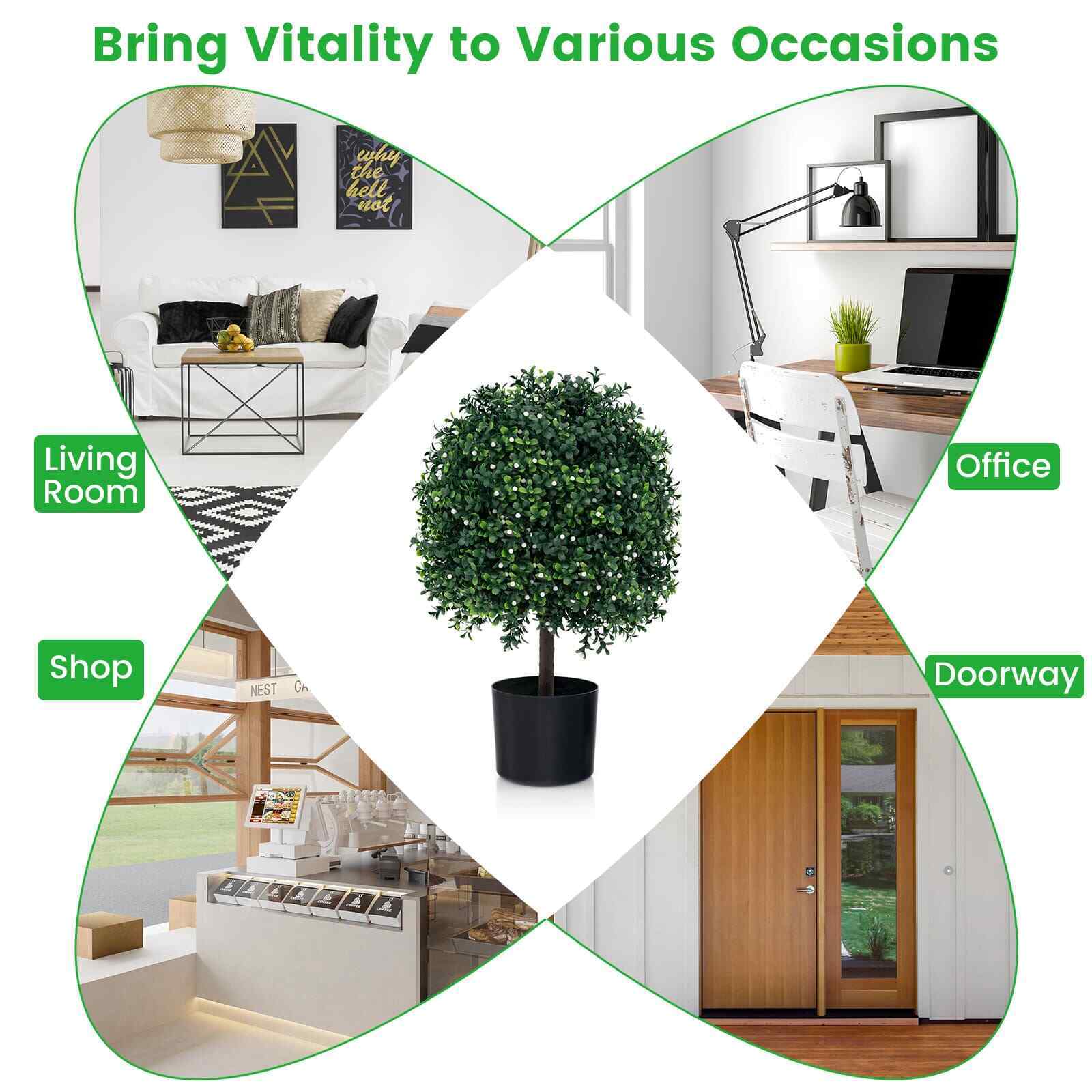 2 Pack Faux Bushes Ball Plants Artificial Boxwood Topiary Ball Tree