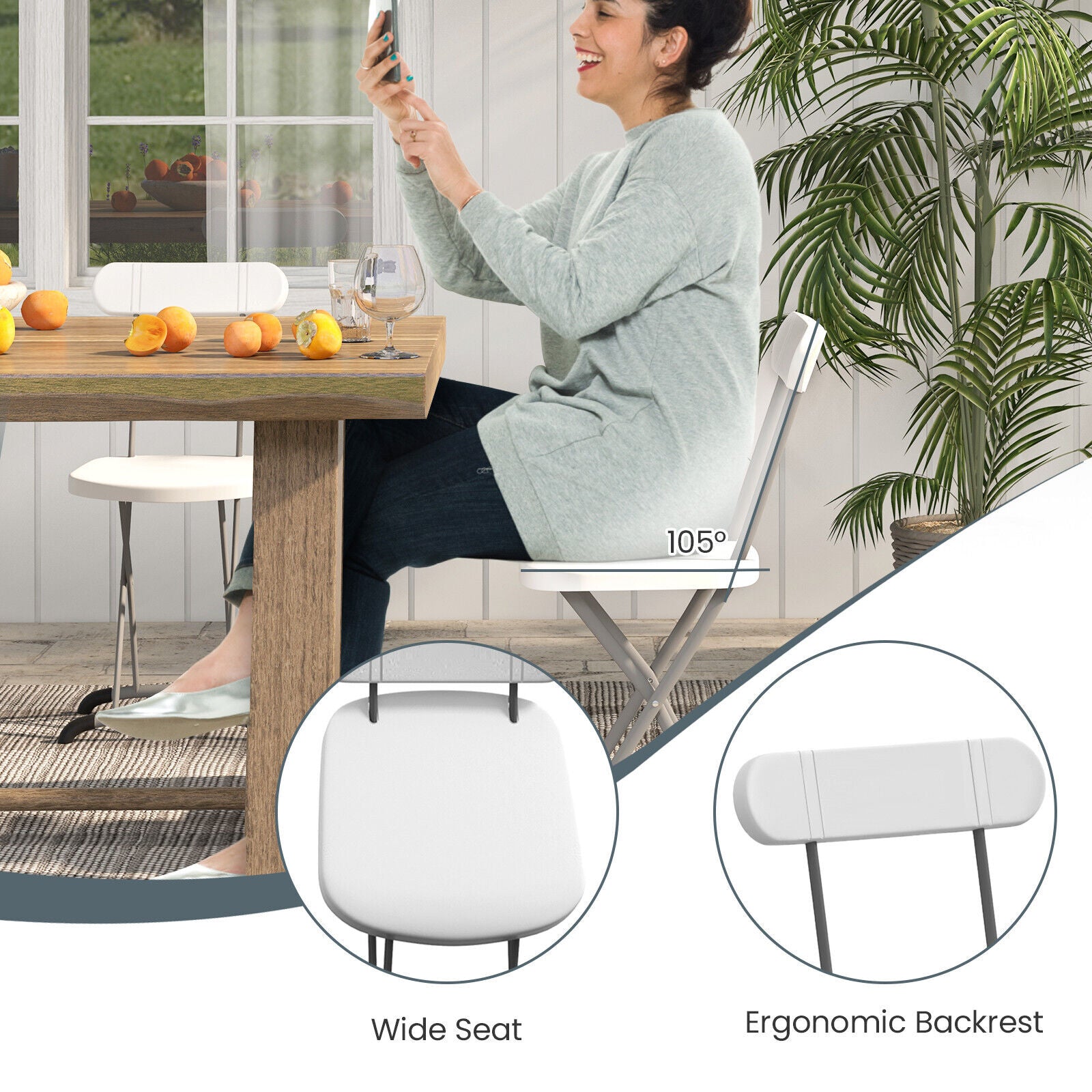 2-Pack Outdoor Folding Chair Heavy Duty Molded Chairs Kitchen Dining Chair White
