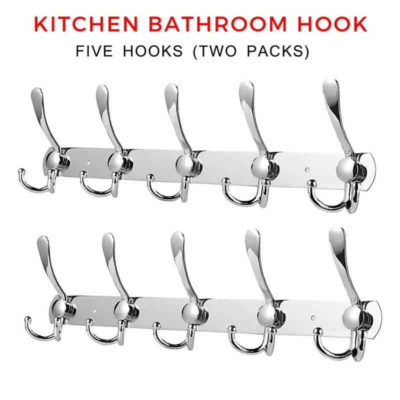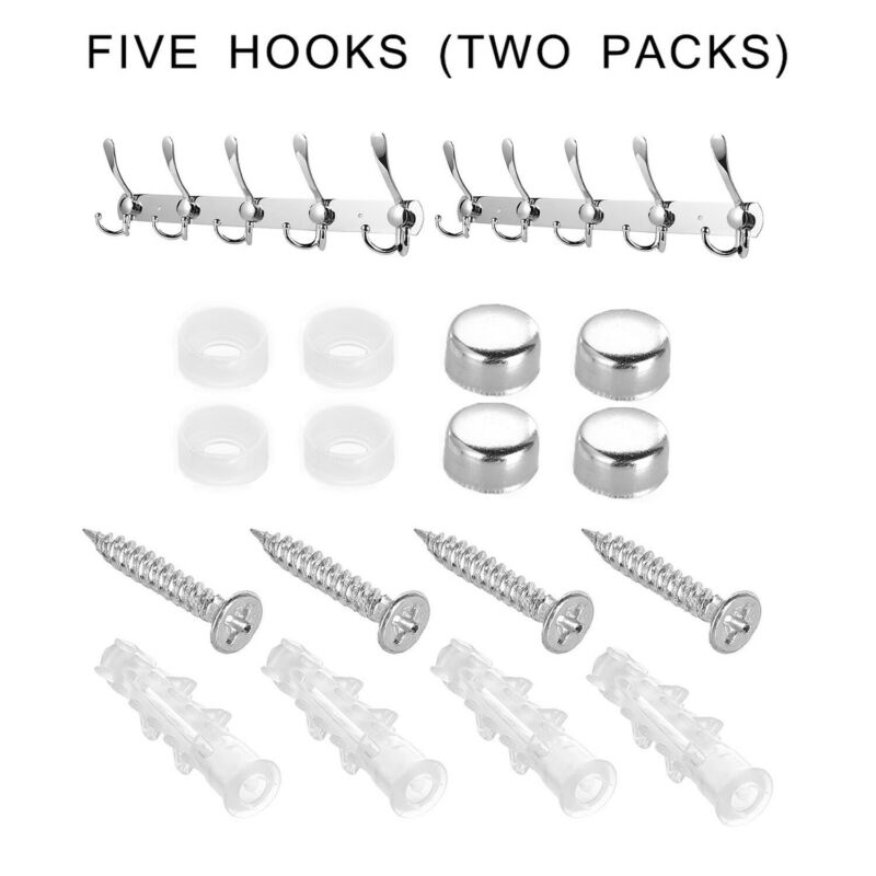 2 Pack Stainless Steel 15 Hooks Coat Clothes Door Holder Rack Hook Wall Hanger