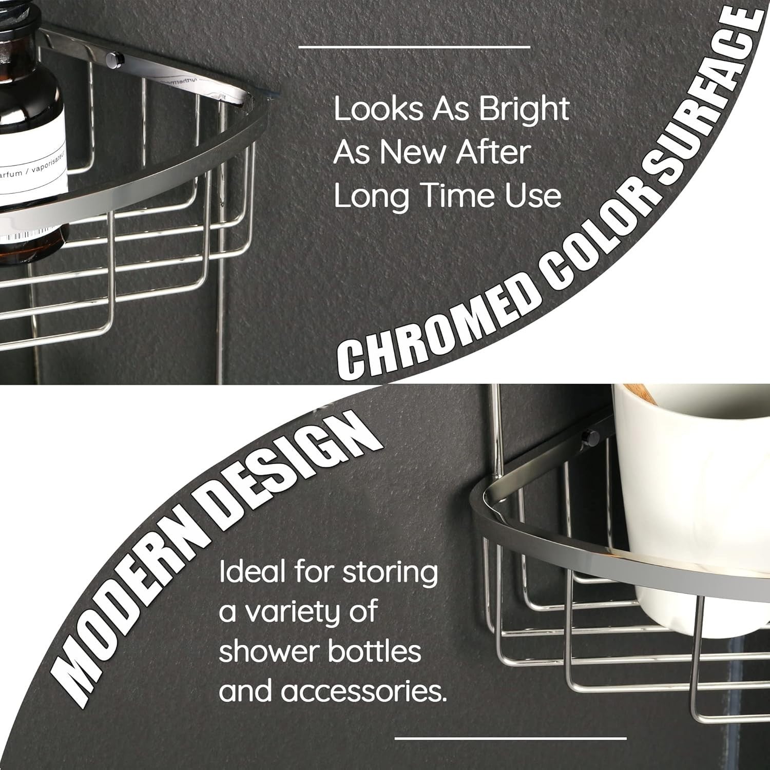 HIGH QUALITY - The corner shower caddy is made of SUS 304 stainless steel, anti-rust and anti-corrosion, ensuring quality and longevity in wet weather. Beautiful polished chromed colour surface, looks as bright as new after long time use.