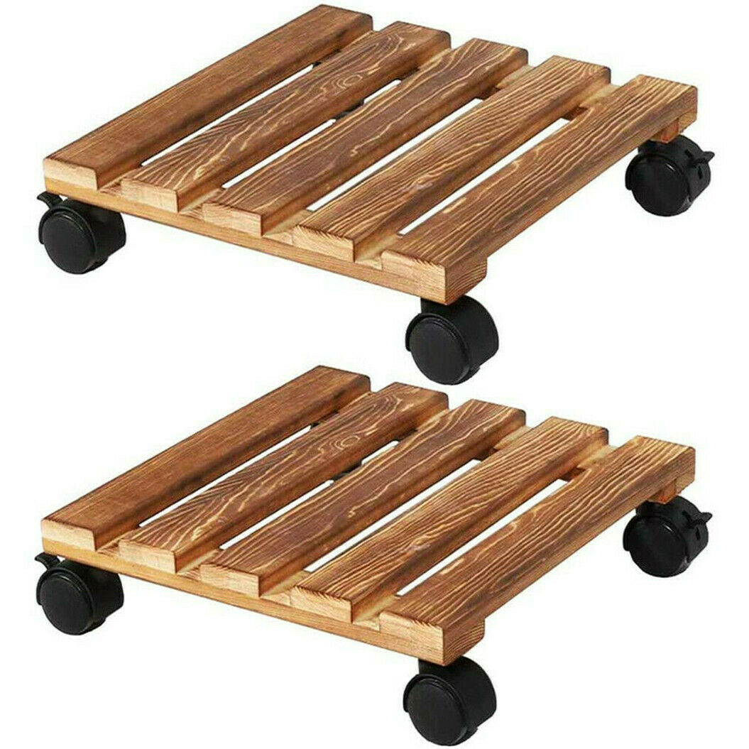 2 Pack Vintage Style Wooden Plant Pot Caddy Garden Planter Trolley Stand 30cm