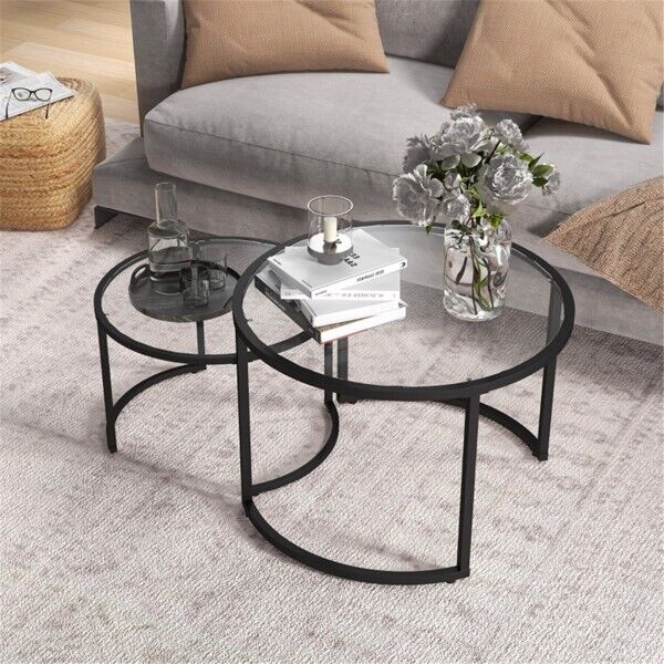 2 Pair Coffee Tables with Tempered Glass Tabletops - Modern Design, Sturdy steel