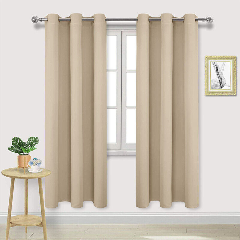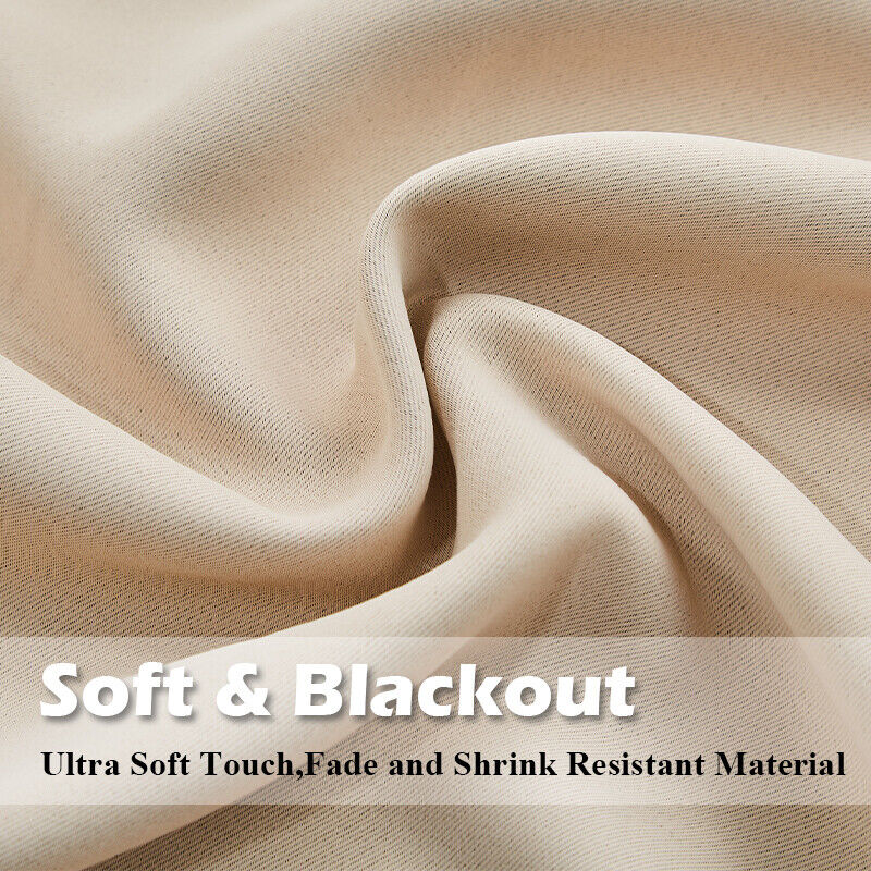 - 2 Panels Curtain Blackout Ring Top Drapes for Bedroom Beige Drapes Modern New