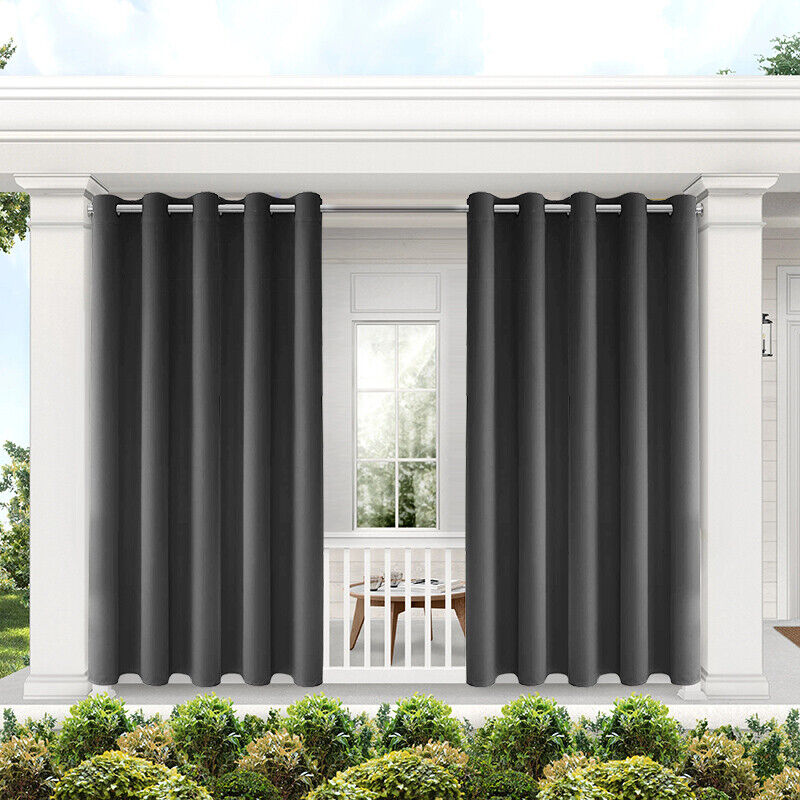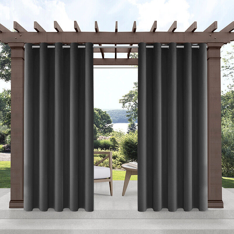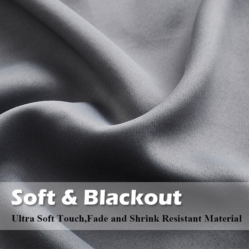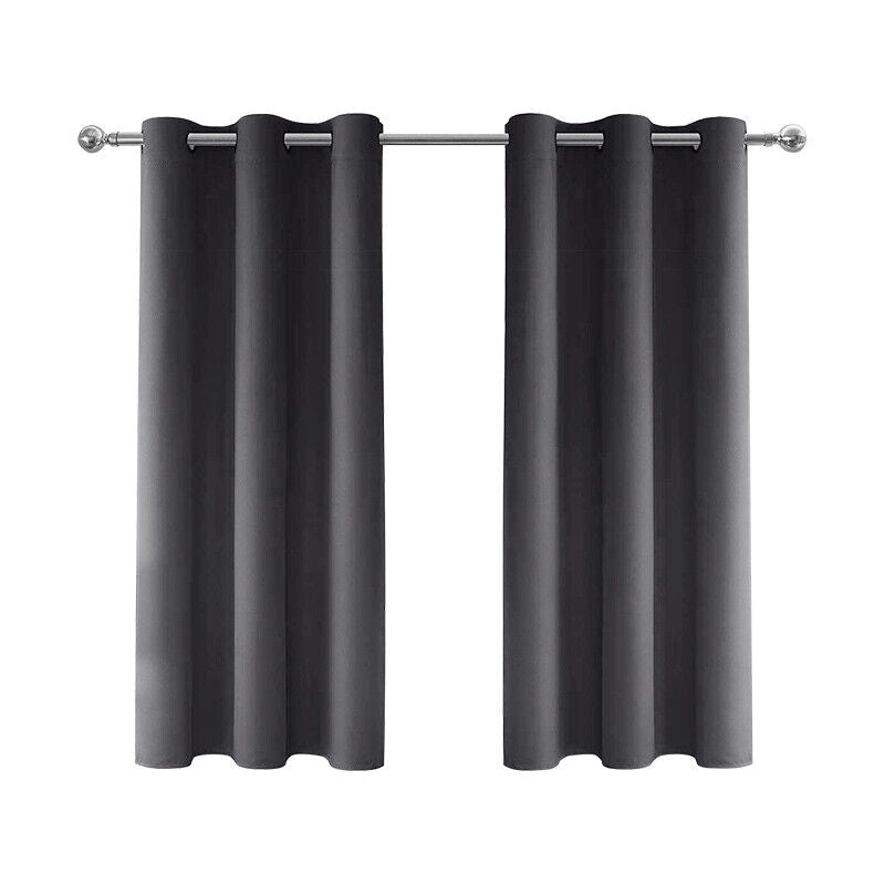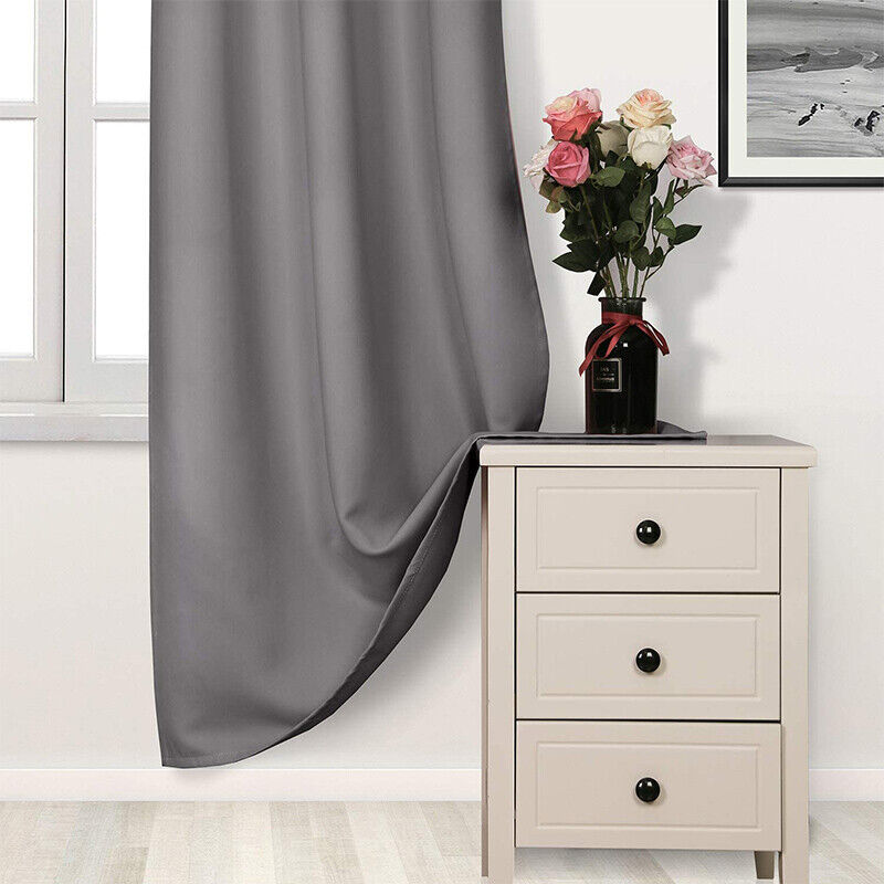 2 Panels Grey Curtains Polyester Ready Made Ring Top Bedroom Curtains Blackout