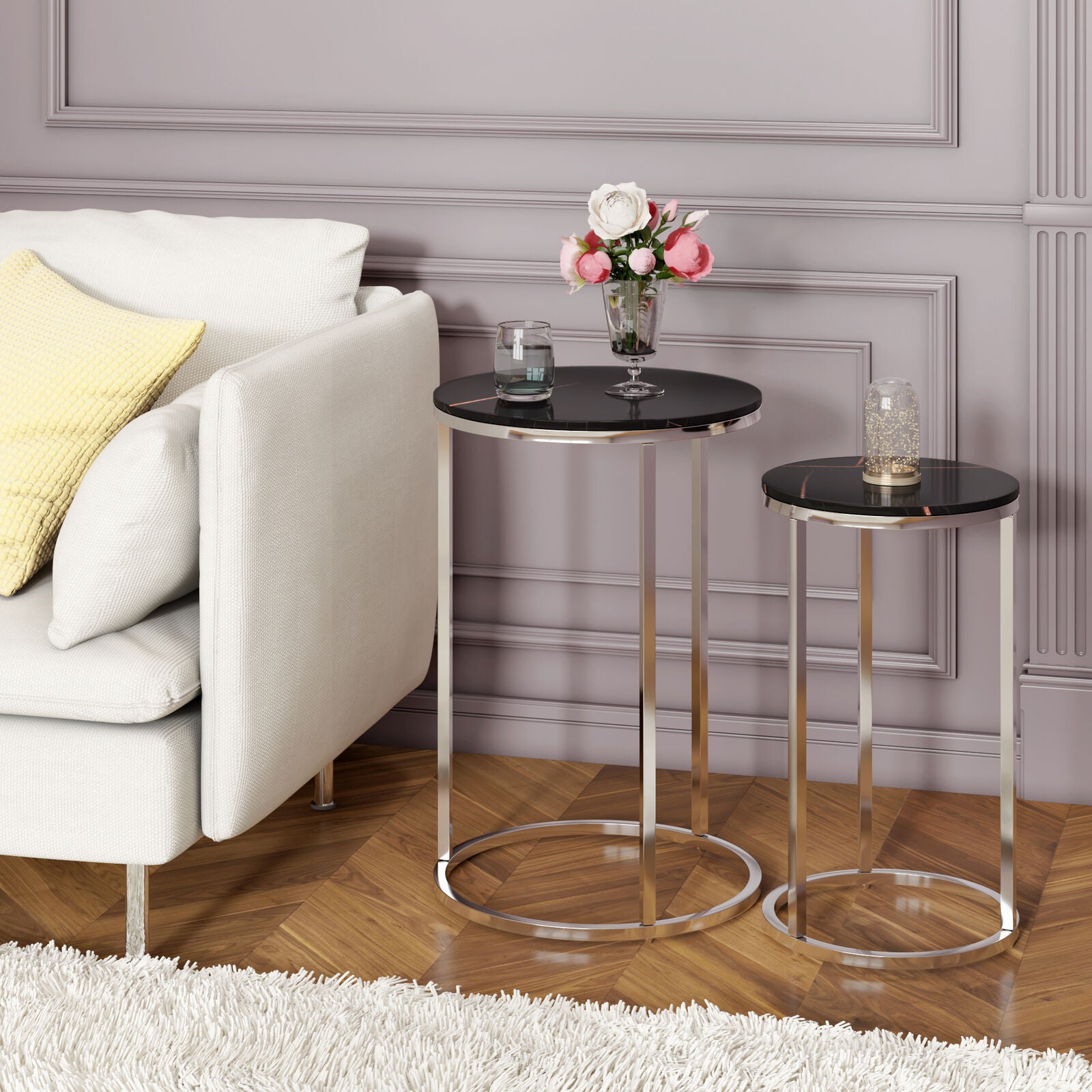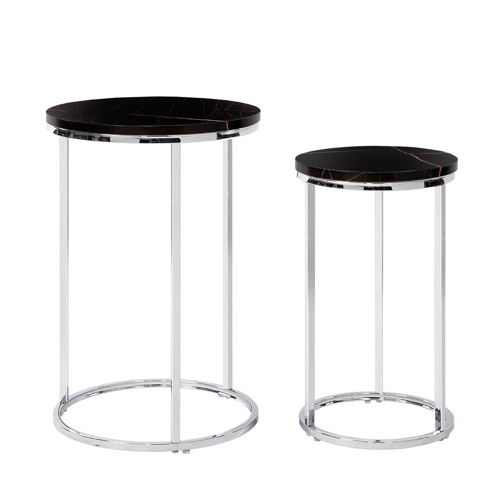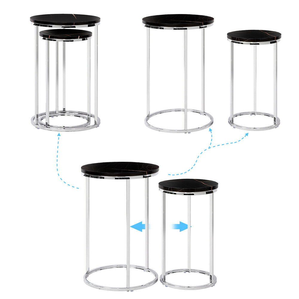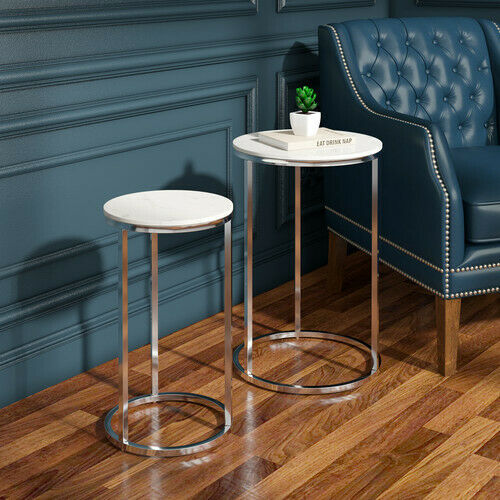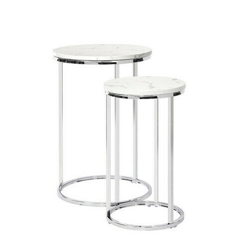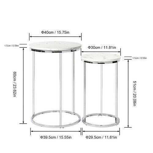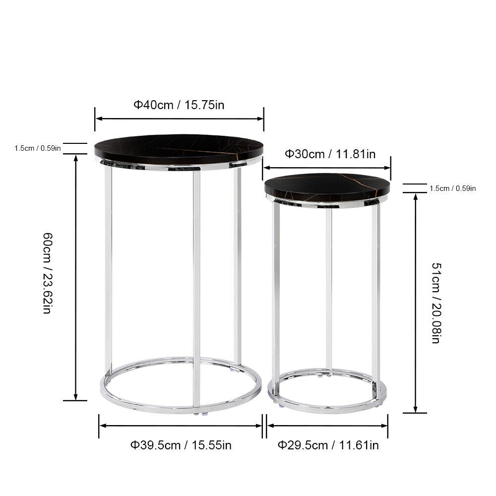 2 Pc White/Black Marble Nested Table Coffee Sofa Beside Side Table Nightstand UK
