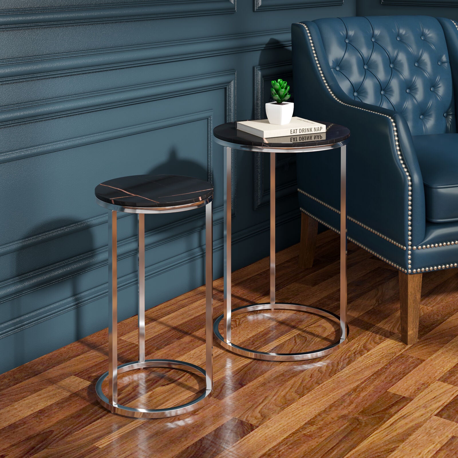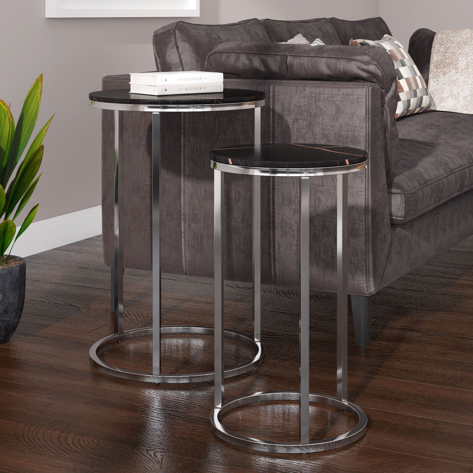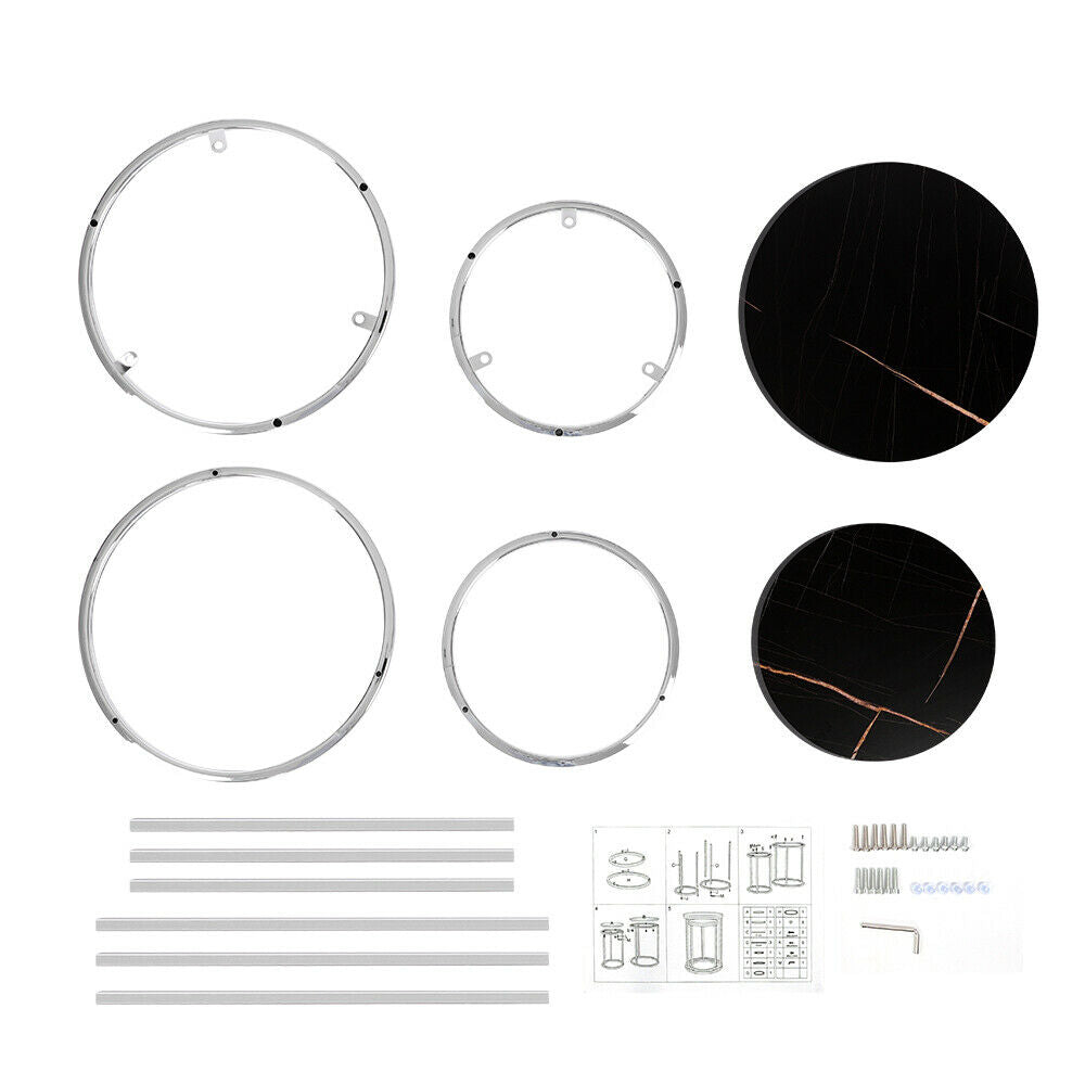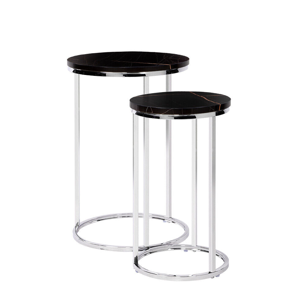 2 Pc White/Black Marble Nested Table Coffee Sofa Beside Side Table Nightstand UK