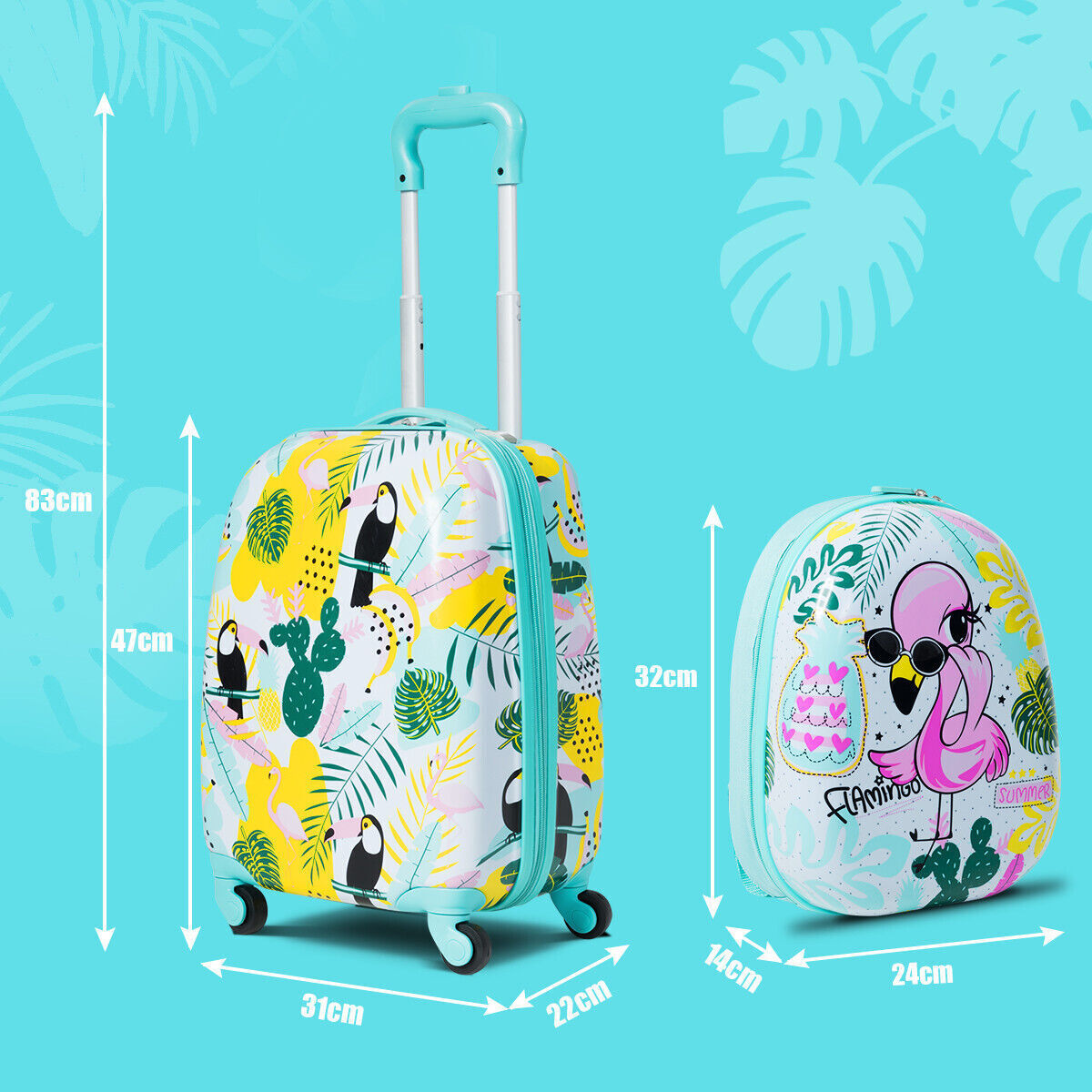 2 PCS 12'' 16'' ABS Kids Backpack Luggage Set Children Suitcase Travel