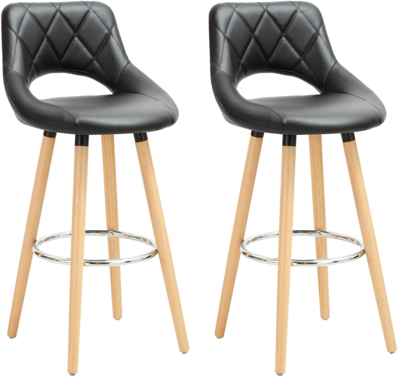 2 pcs Bar Stools Breakfast Kitchen Counter High Stools Wood Legs Barstools
