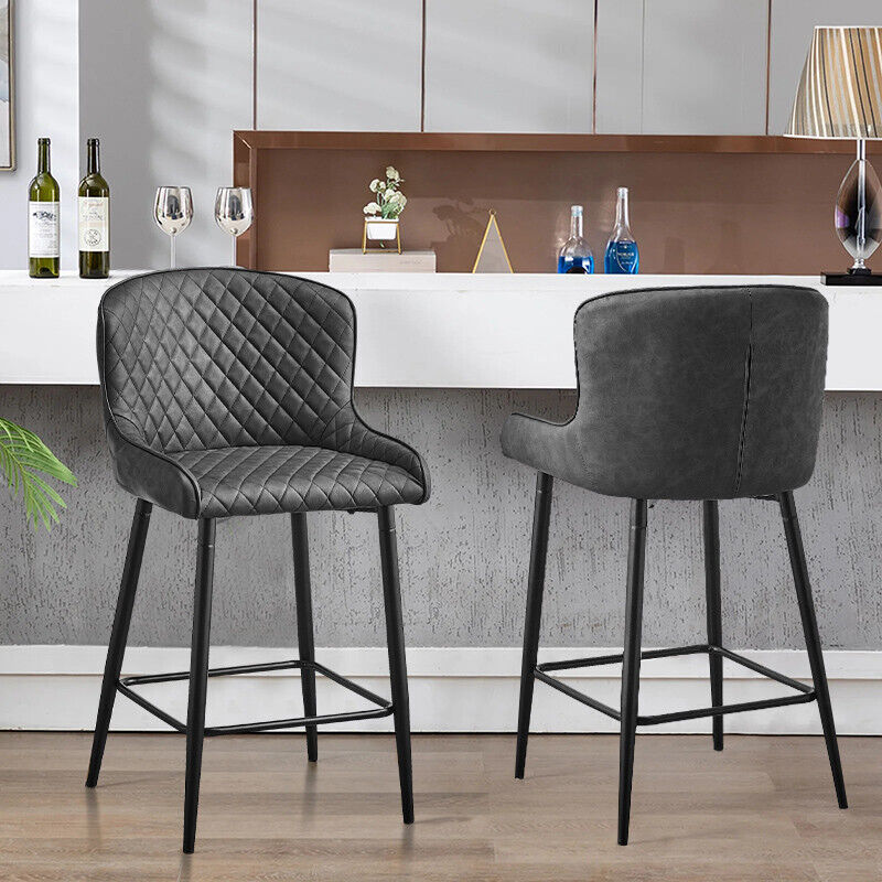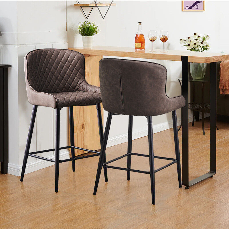 2 Pcs Bar Stools Brown Grey Metal Legs Faux Leather Dining Room Breakfast Stool
