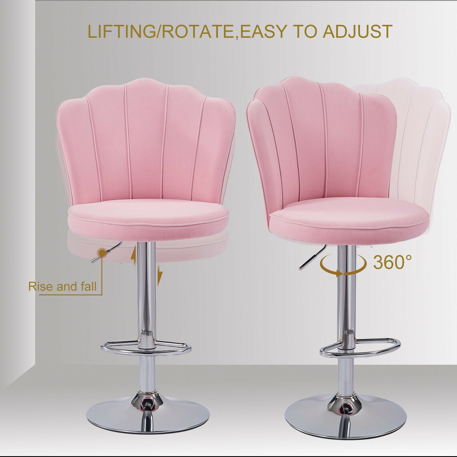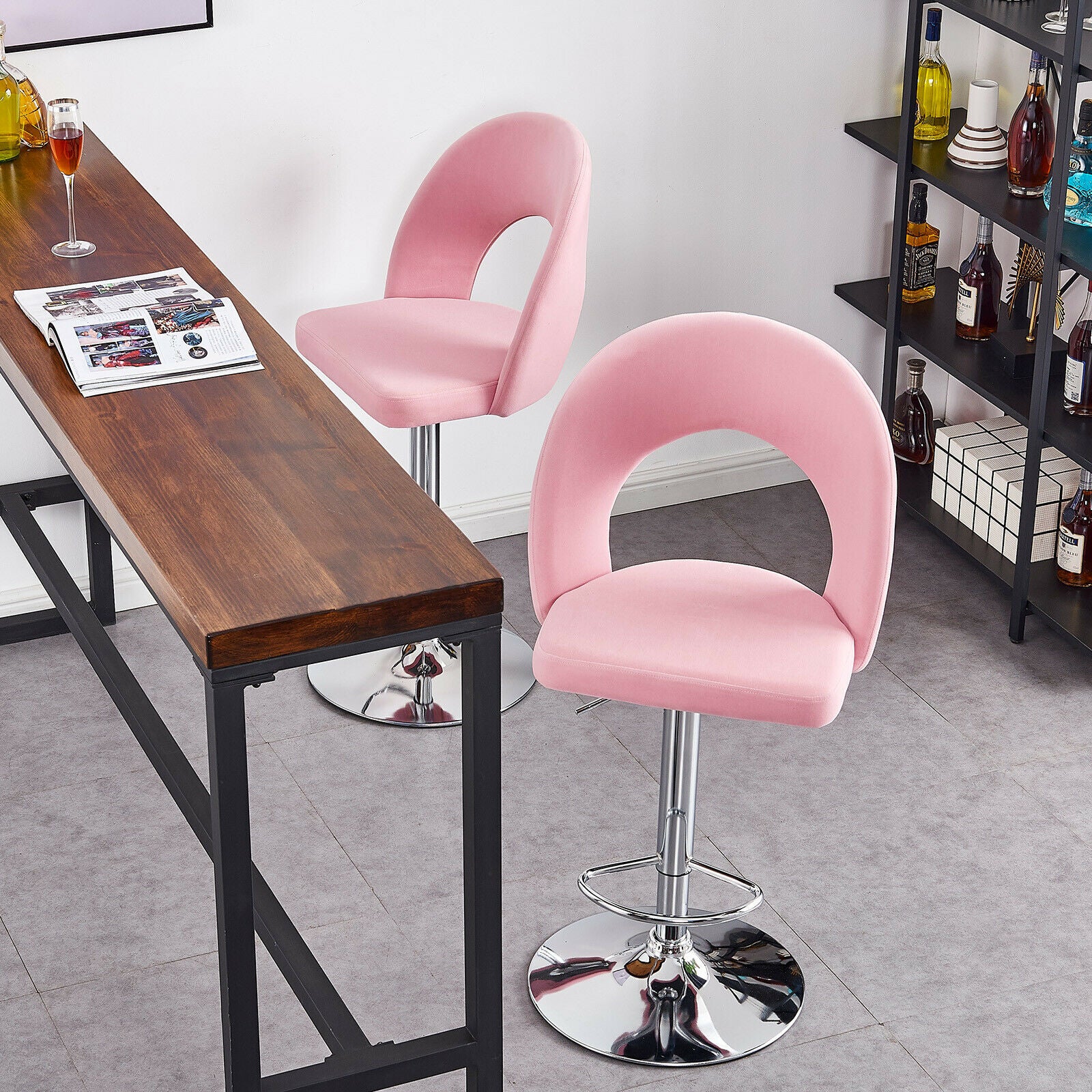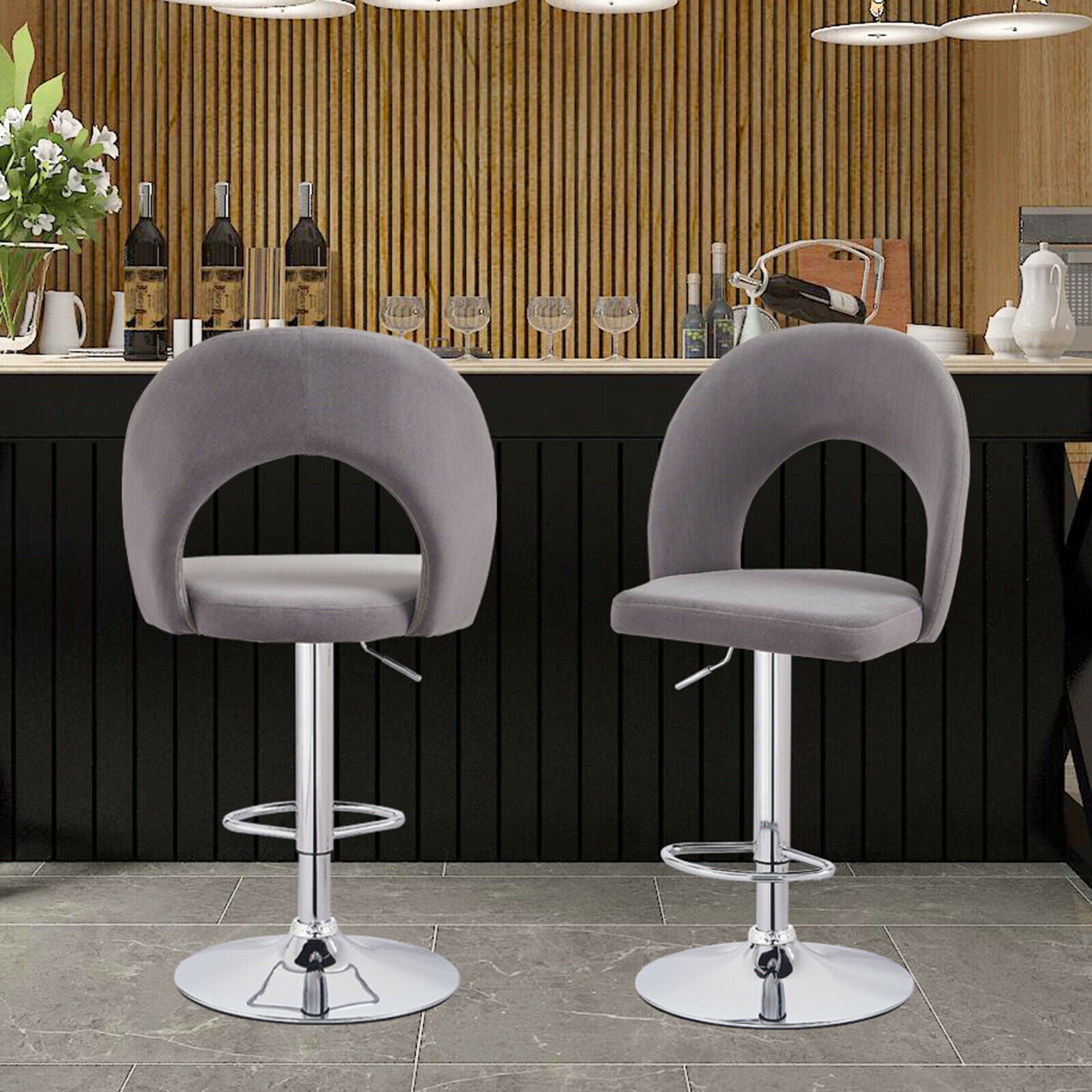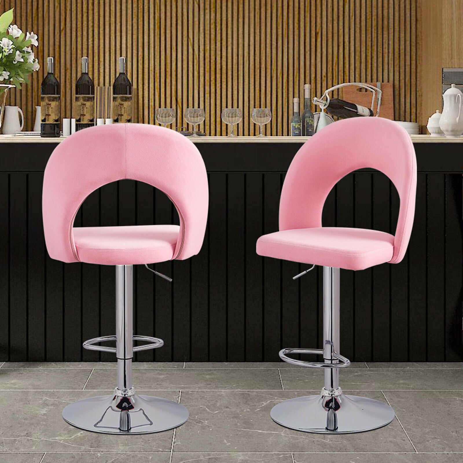 2 Pcs Bar Stools Velvet Breakfast Bar Chairs Swivel Gas Lift Kitchen Dining Room