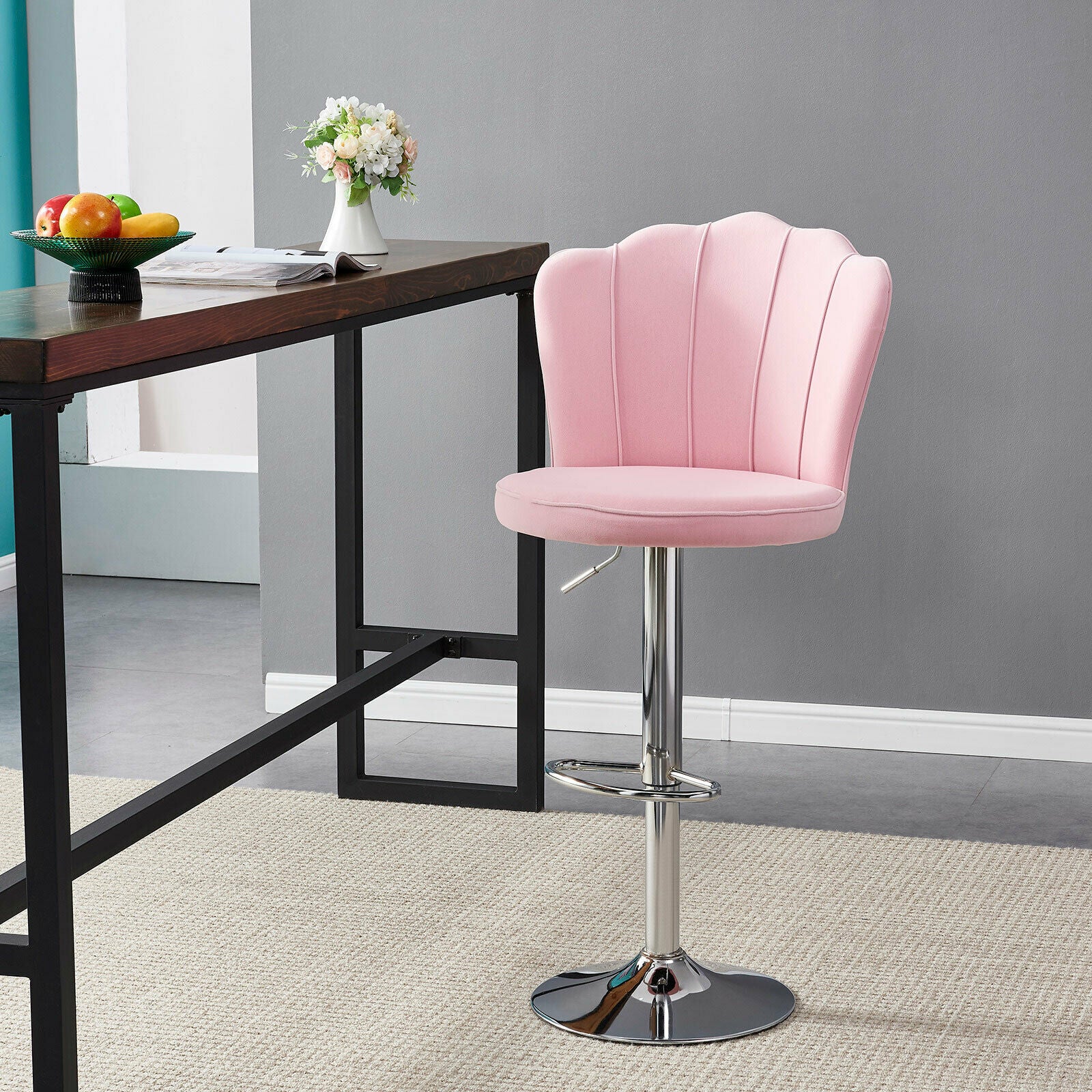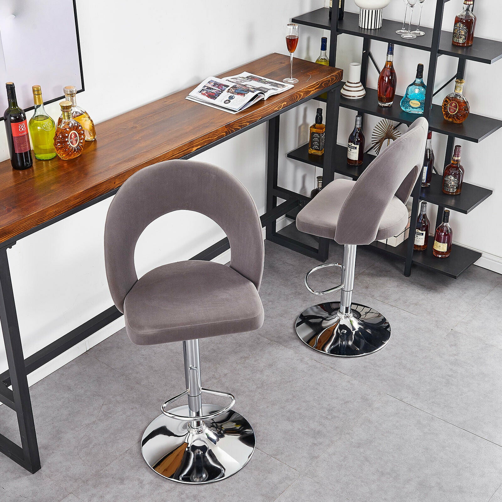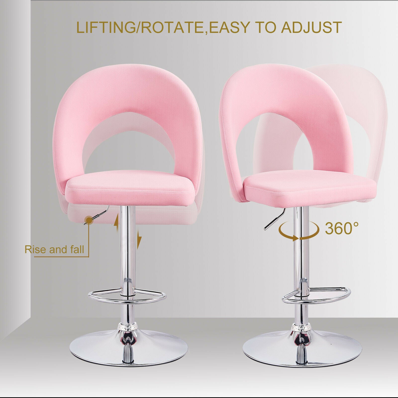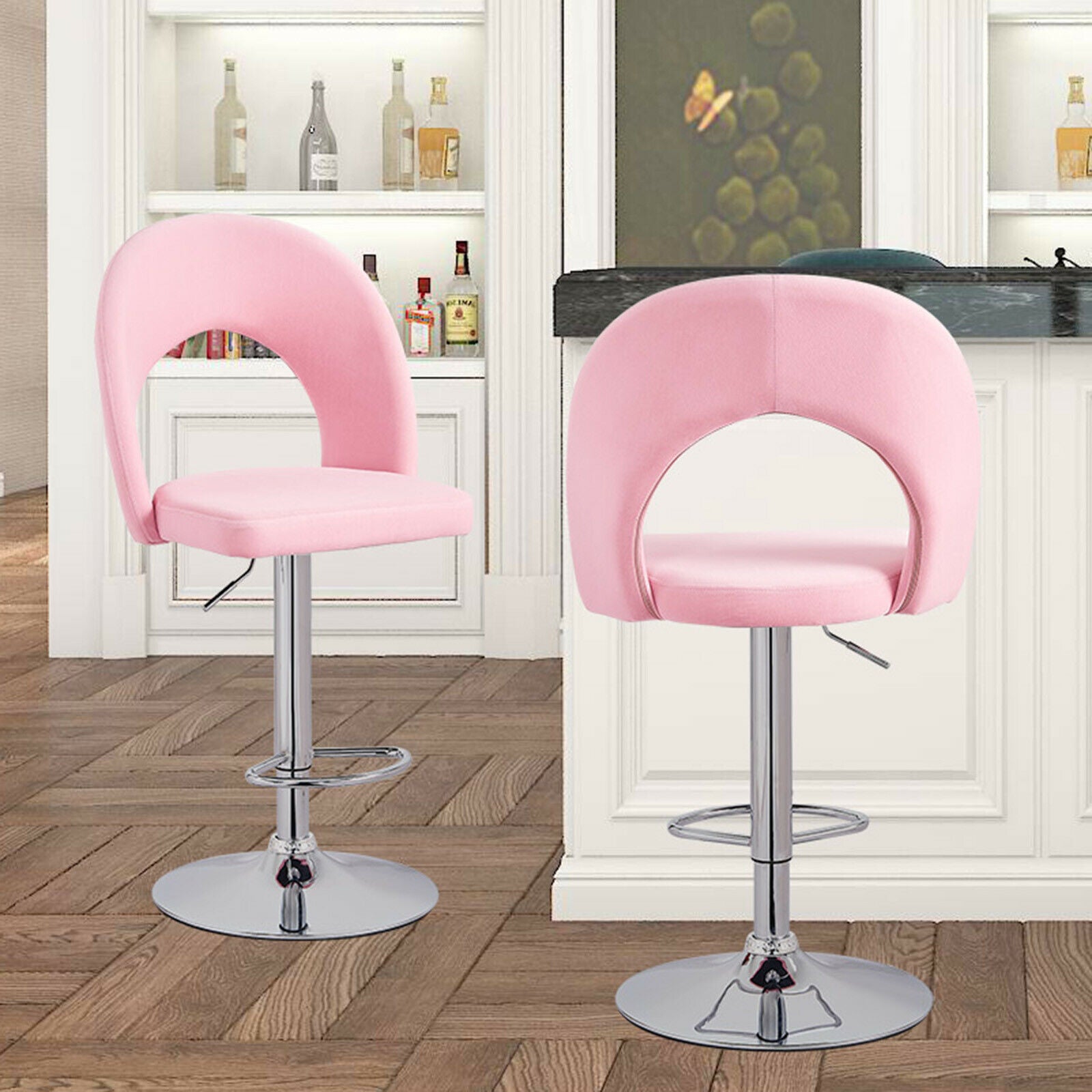2 Pcs Bar Stools Velvet Breakfast Bar Chairs Swivel Gas Lift Kitchen Dining Room