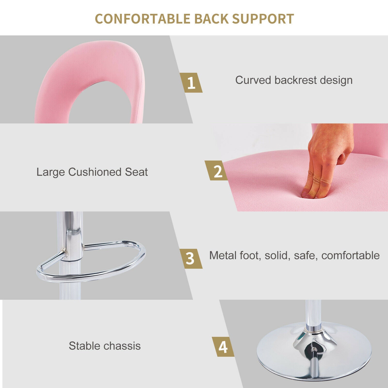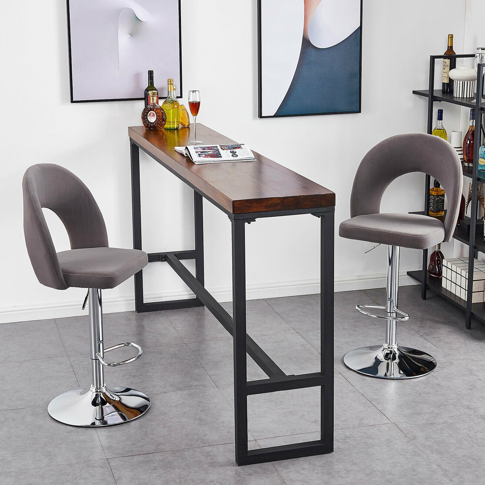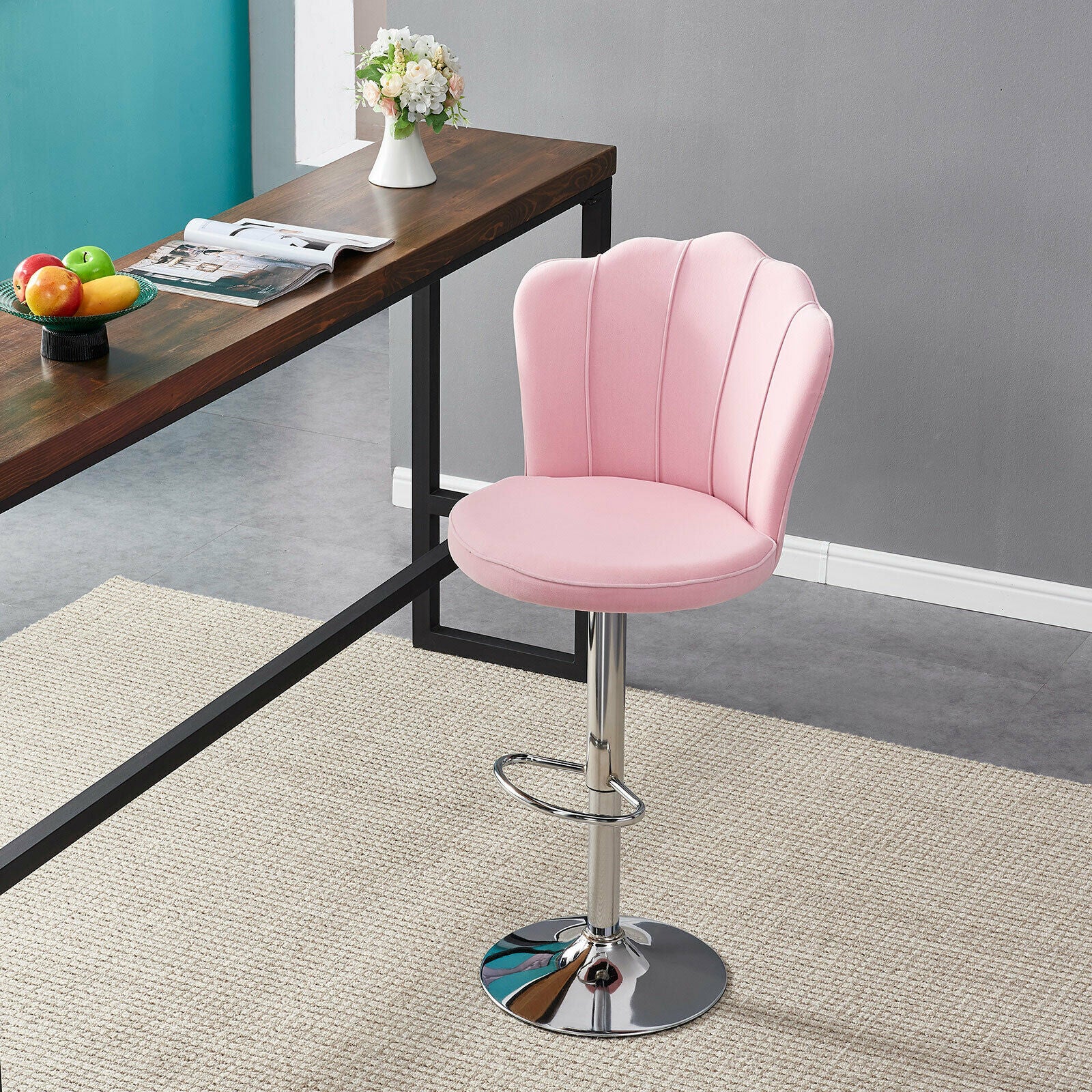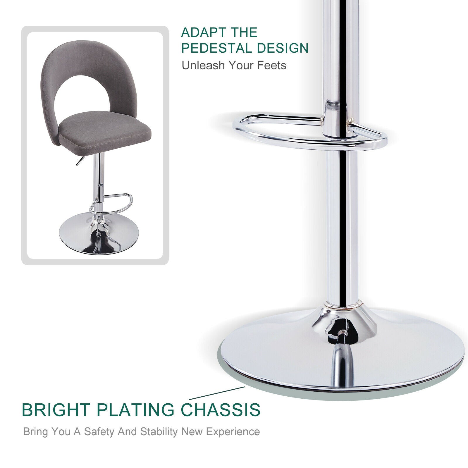2 Pcs Bar Stools Velvet Breakfast Bar Chairs Swivel Gas Lift Kitchen Dining Room