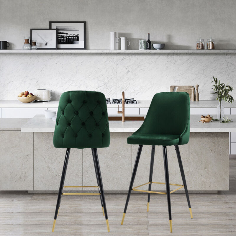 2 Pcs Barstools Set Velvet Padded Metal Legs Kitchen Breakfast Chairs Stools