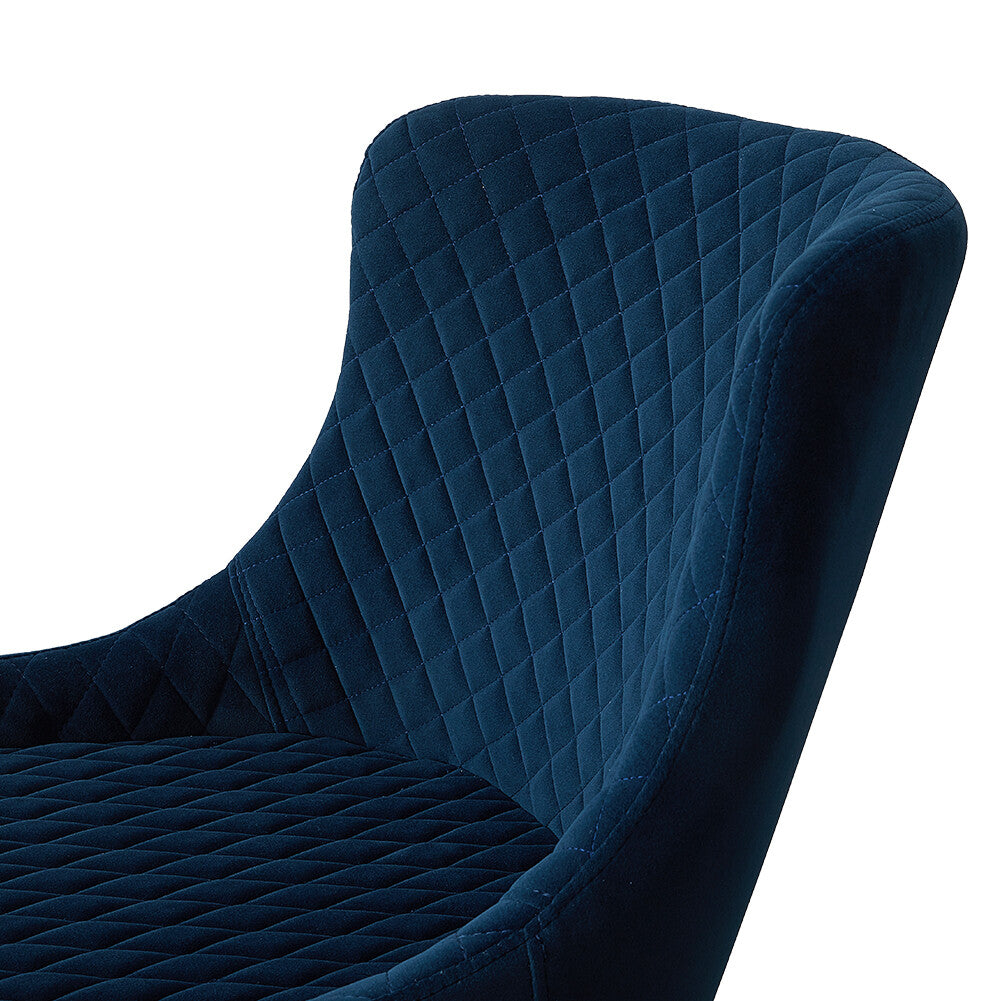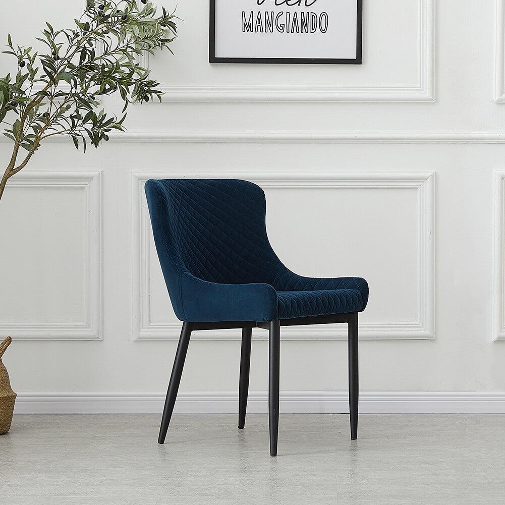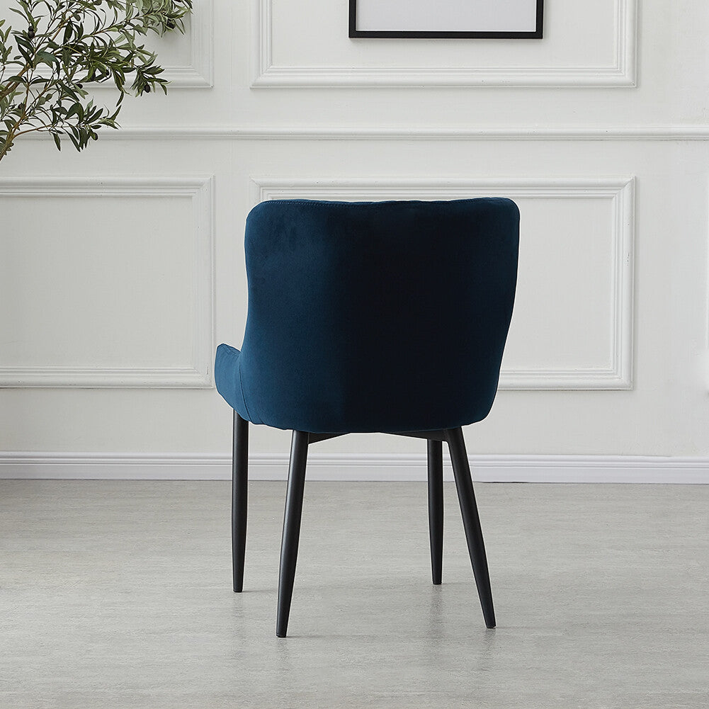 2 Pcs Blue Velvet Dining Chair Lounge Chair with Metal Black Legs