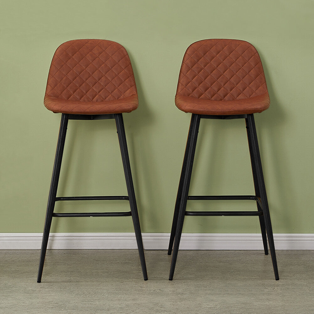 2 Pcs Breakfast Bar Stools Faux Leather Pub Chairs High Legs Padded Dining Room