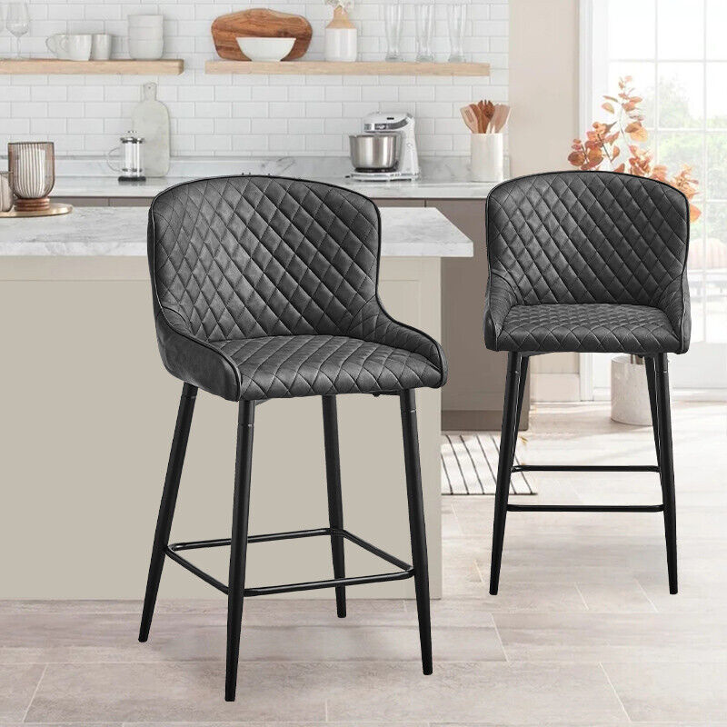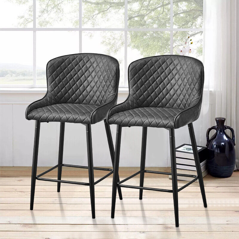 2 Pcs Breakfast Stool Bar Stools Brown Grey Faux Leather Dining Room Metal Legs