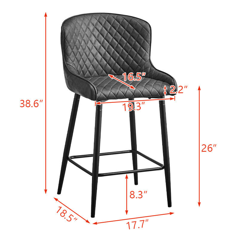 2 Pcs Breakfast Stool Bar Stools Brown Grey Faux Leather Dining Room Metal Legs