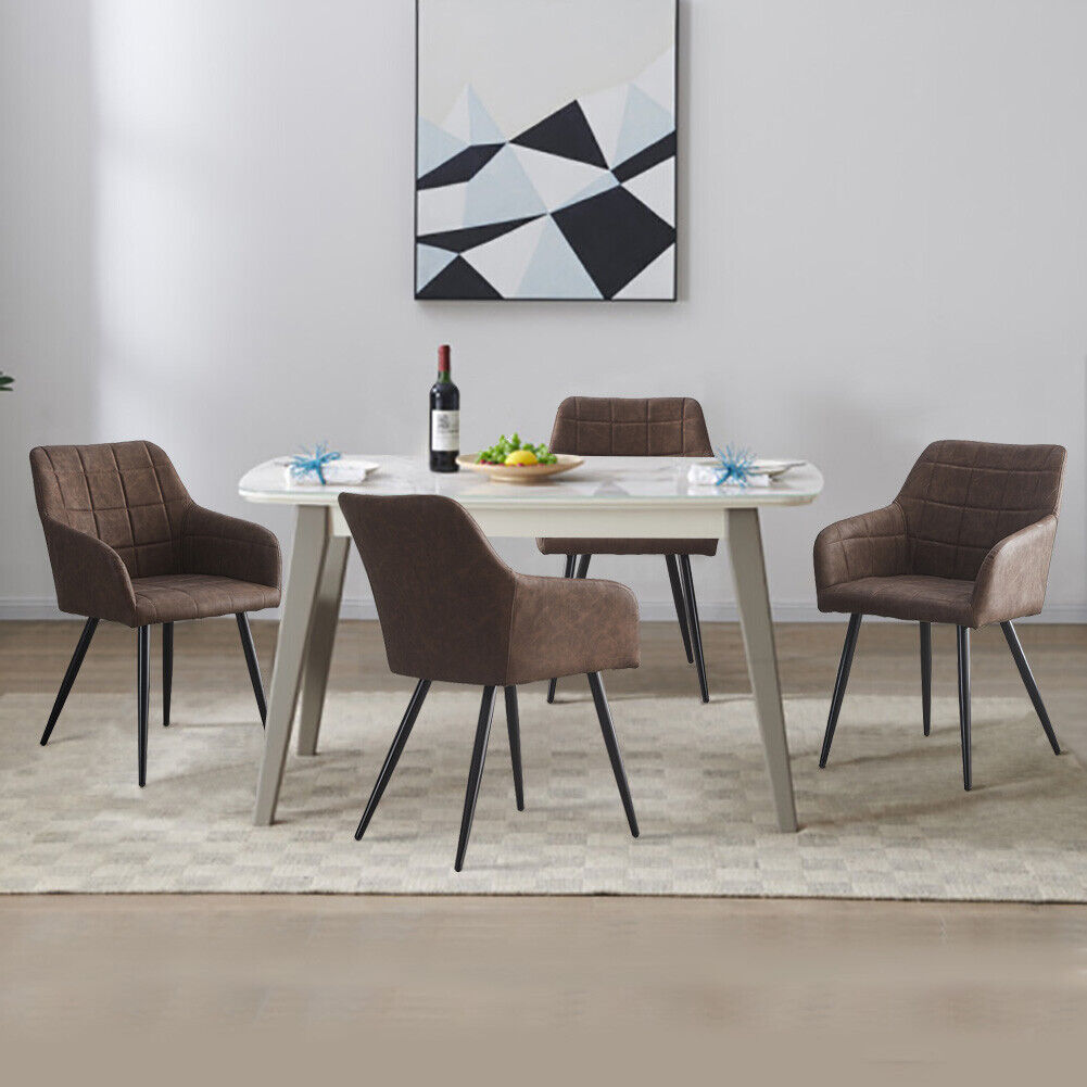 2 Pcs Brown Dining Chairs Faux Leather Office Chair Dining Room Furniture Modern