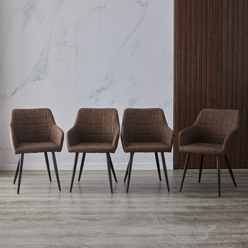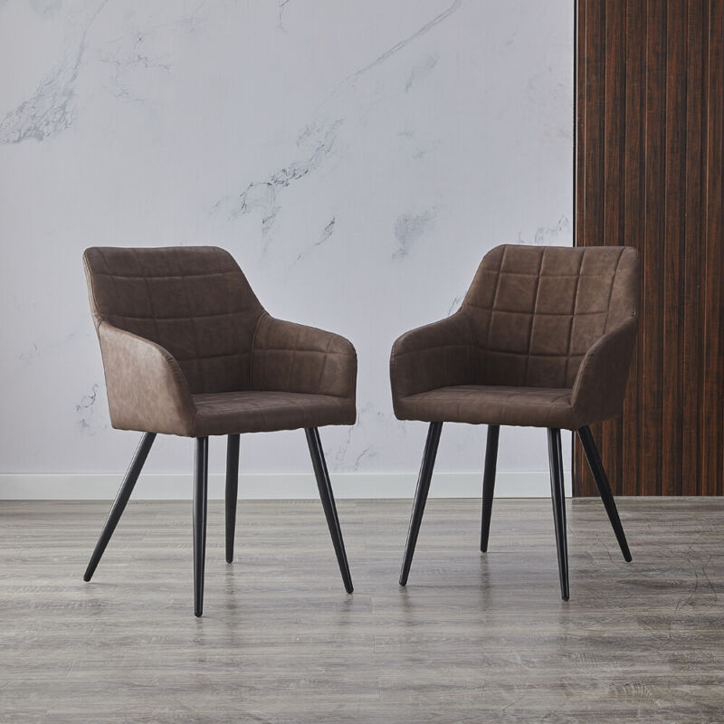 2 Pcs Brown Faux Leather PU Armchairs Dining Chairs Office Dining Room Retro