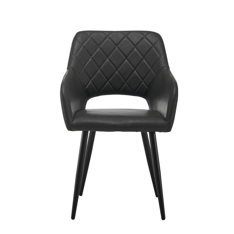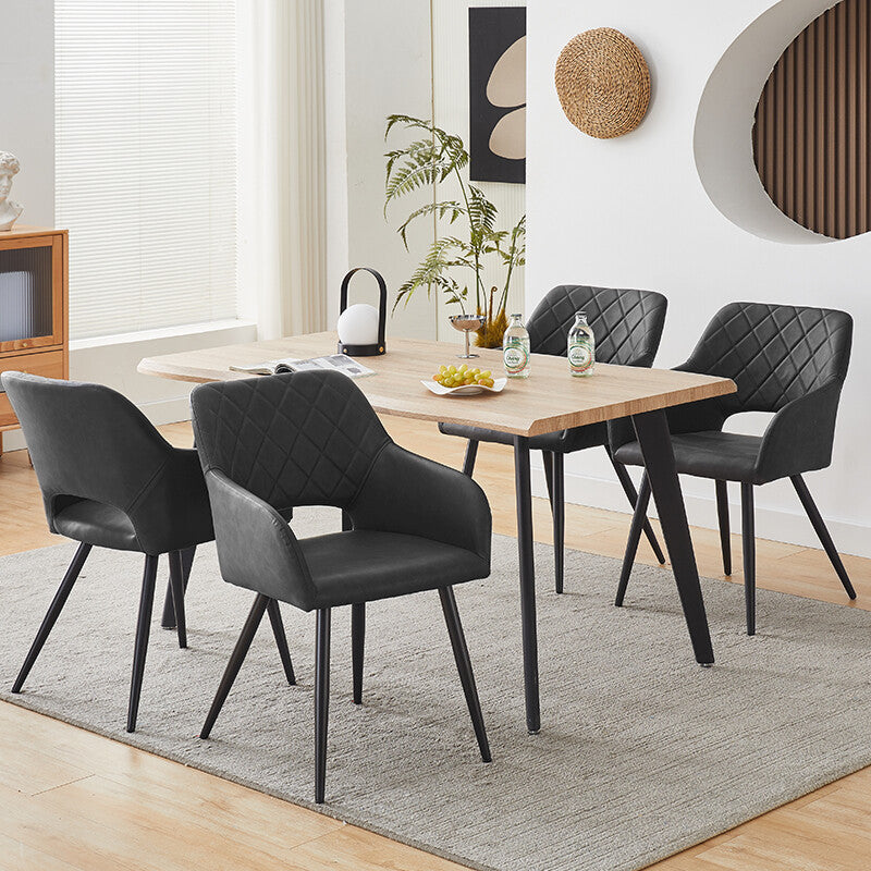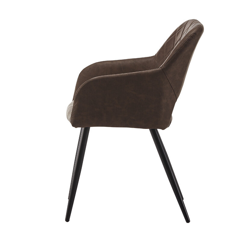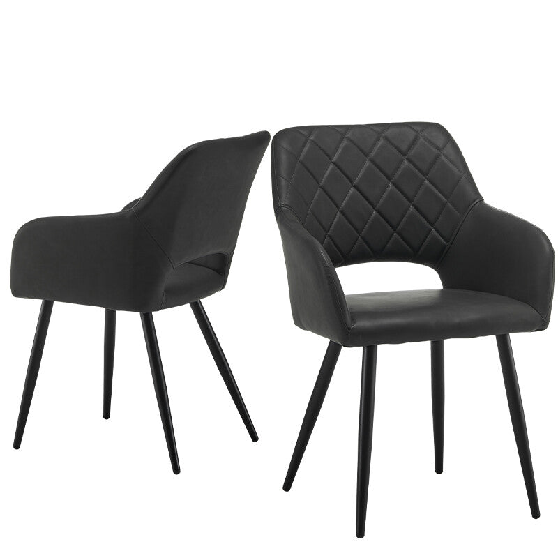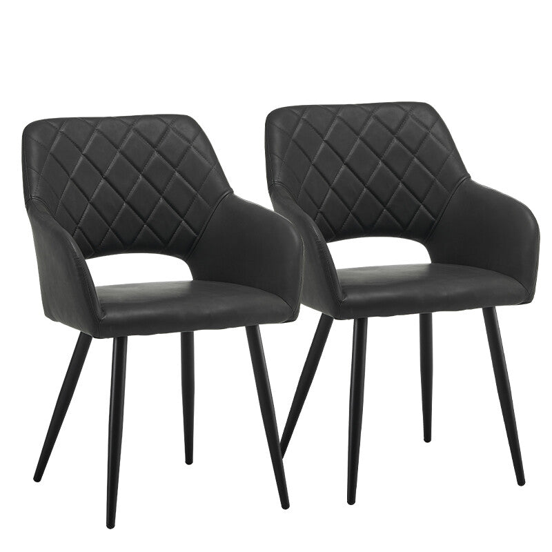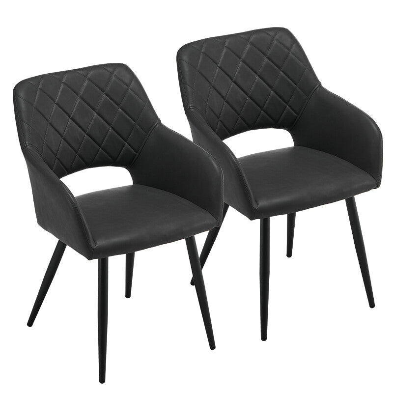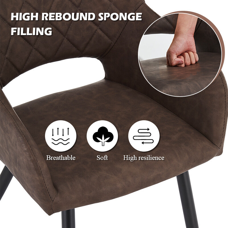 2 Pcs Brown GreyDining Chairs Faux Leather Diamond Cushion Seat With Hole