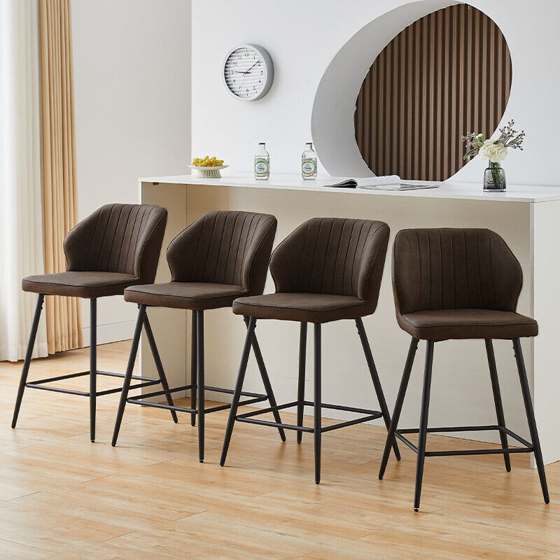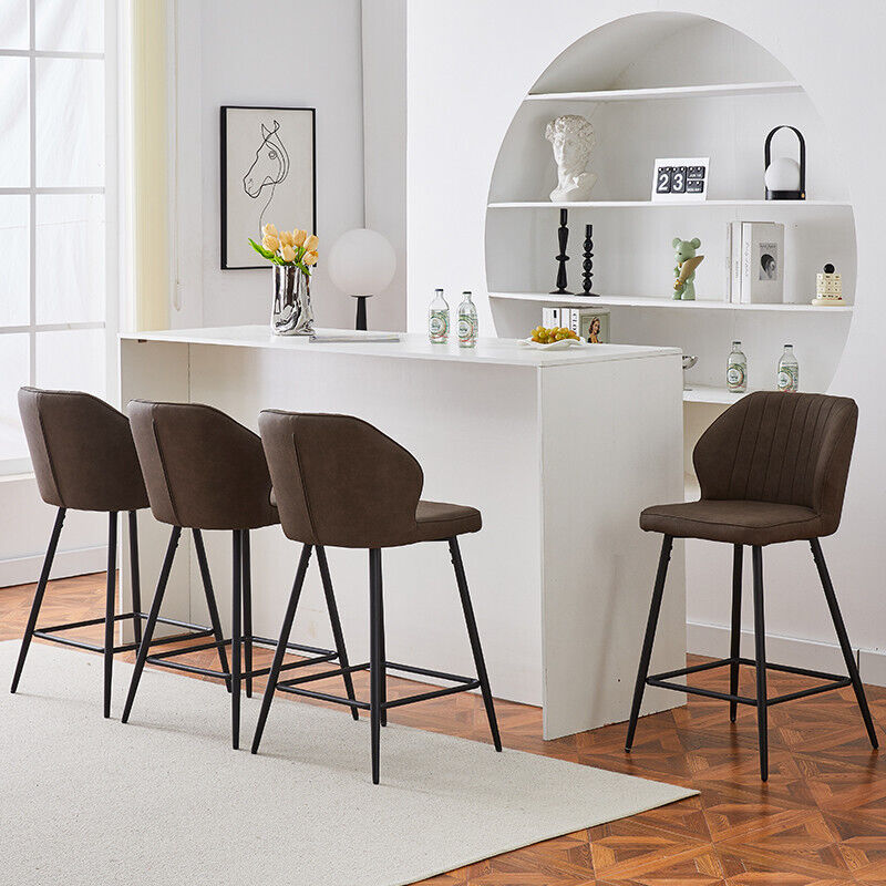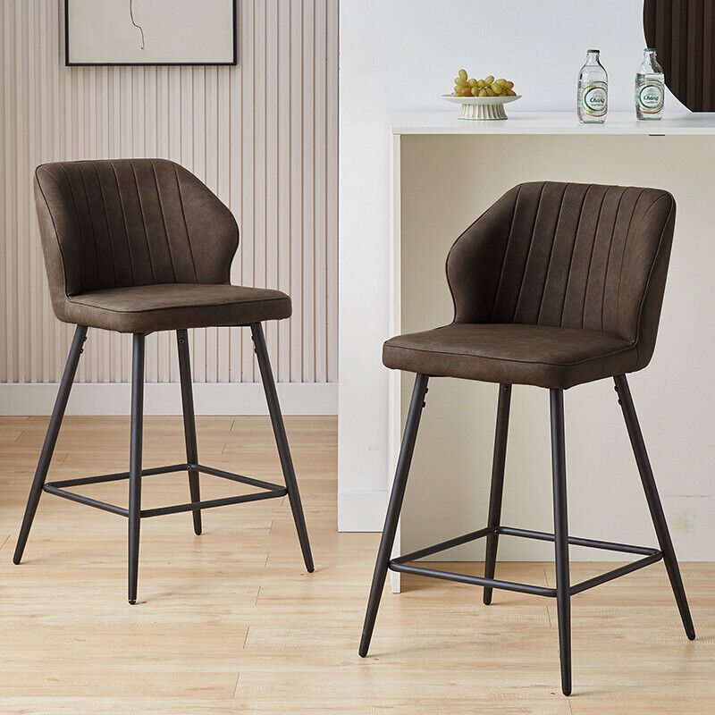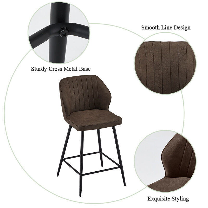 2 Pcs Brown PU Bar Stools Restaurant Bar Stools Soft Padded Seat Back Metal Legs