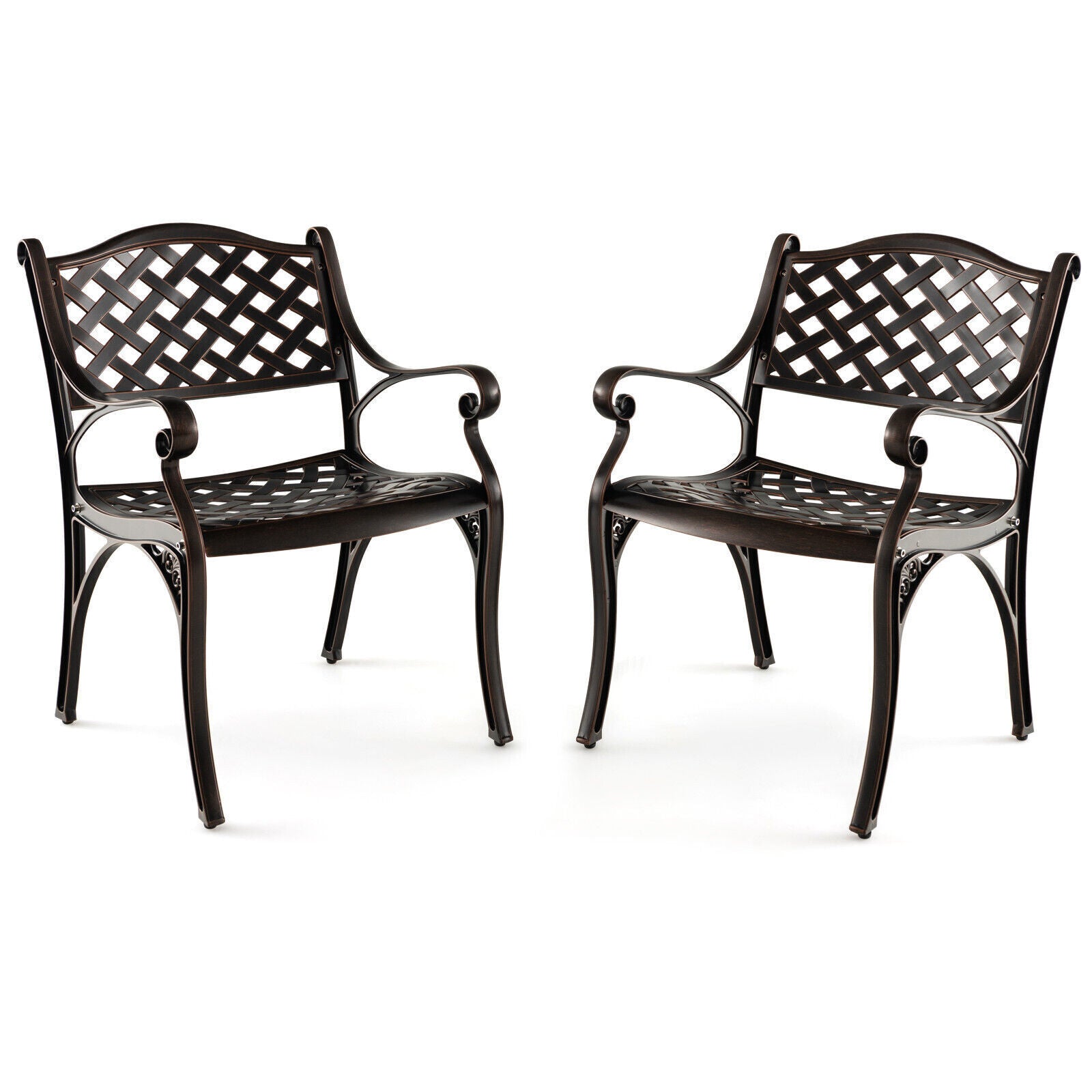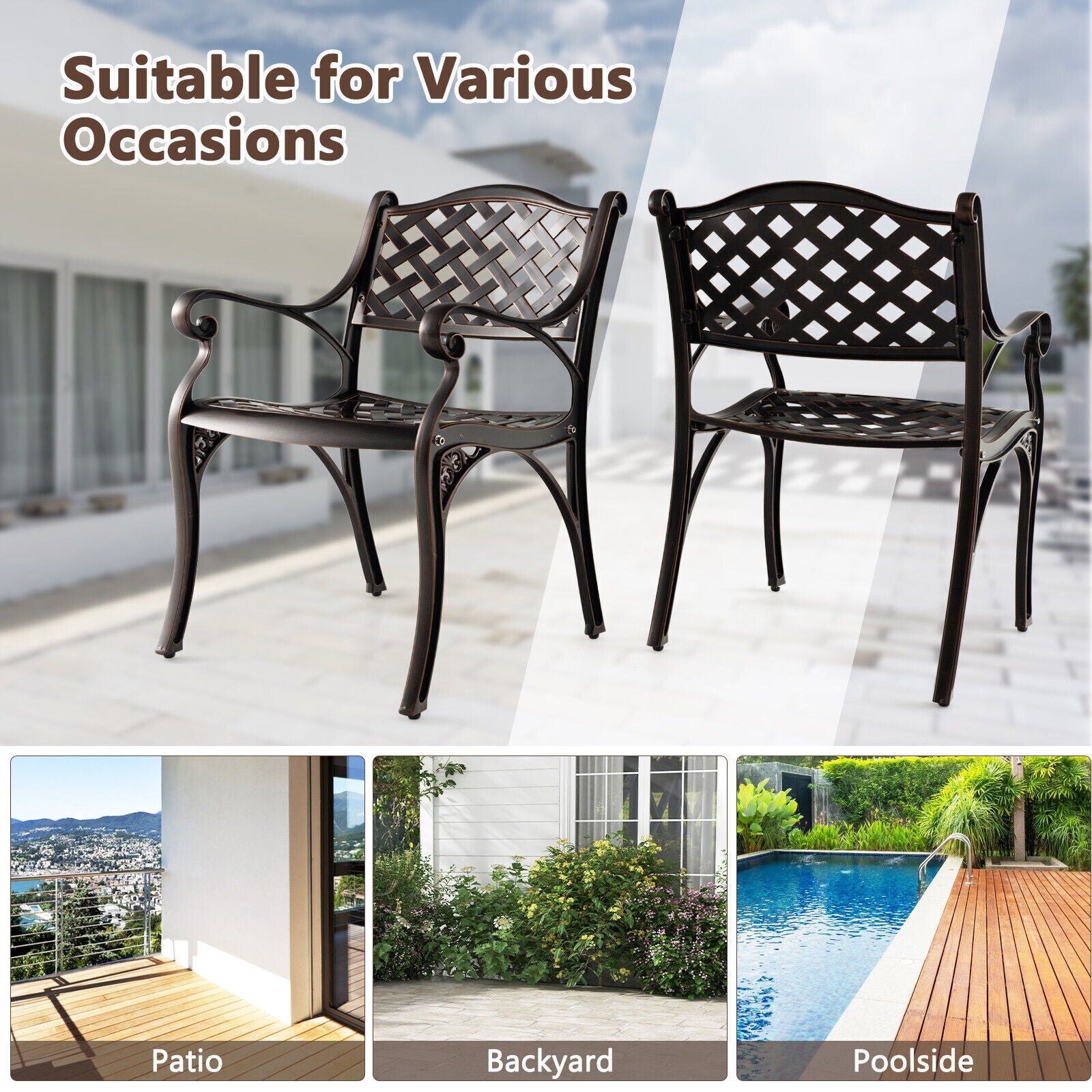 2 Pcs Cast Aluminum Patio Dining Chairs Set Heavy Duty Metal Bistro Chairs