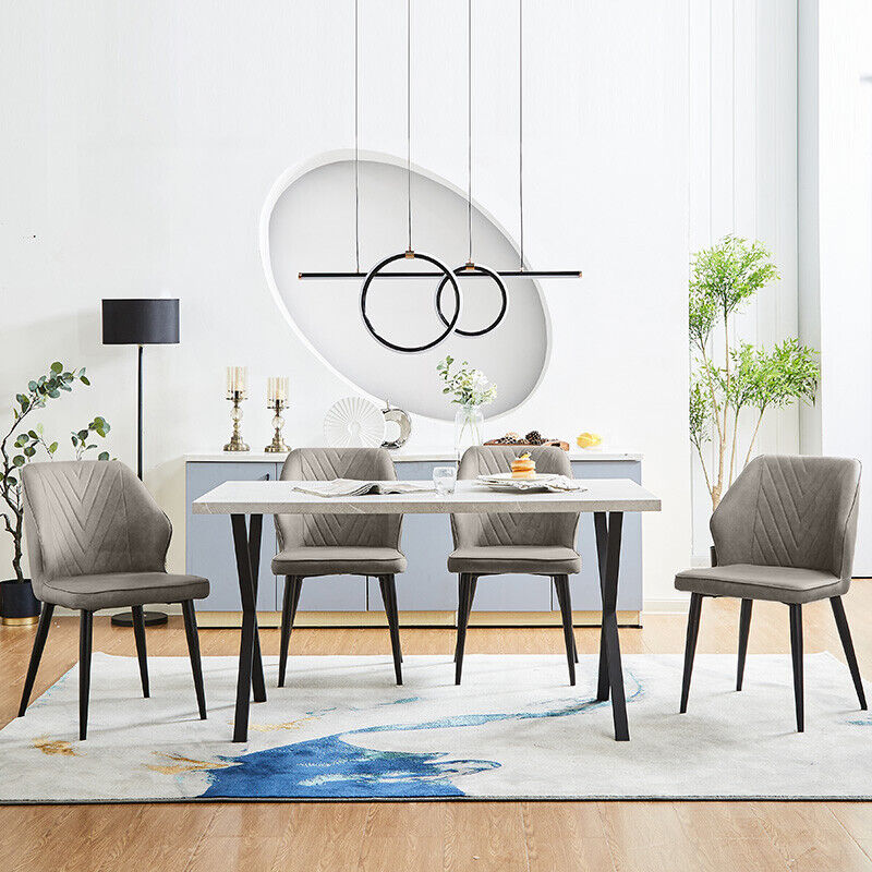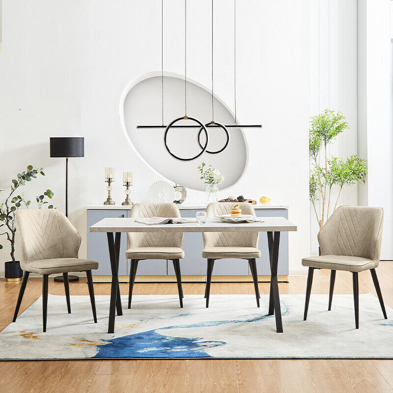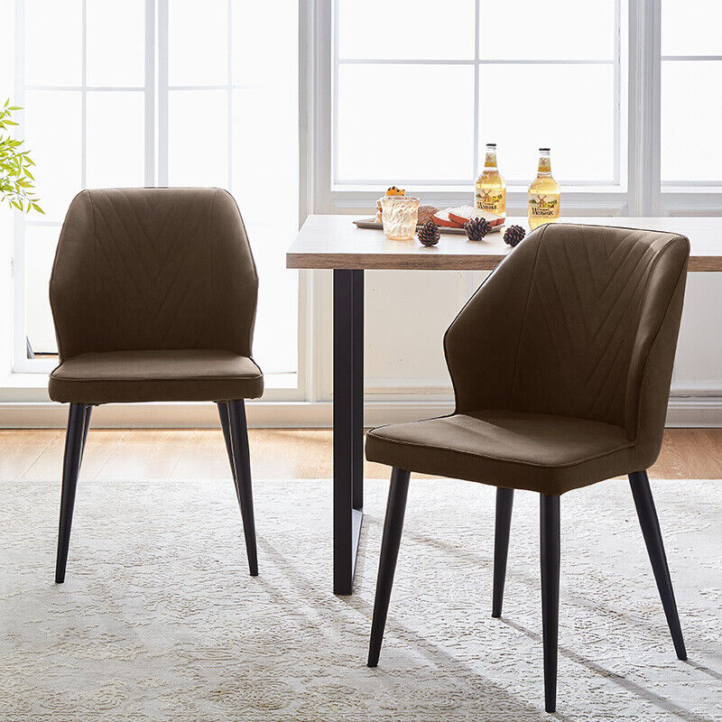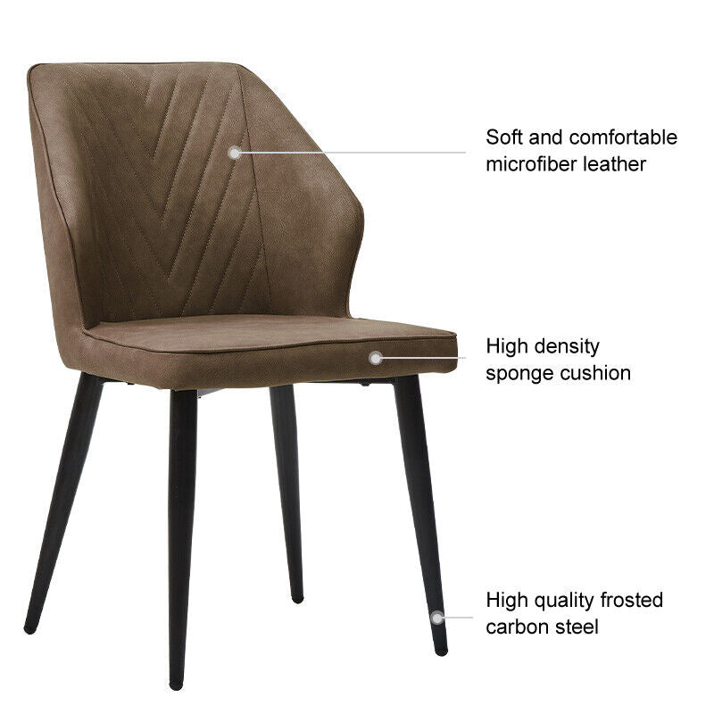 2 Pcs Dining Chair Grey Brown Cream Faux Leather Padded Chair Modern Living Room