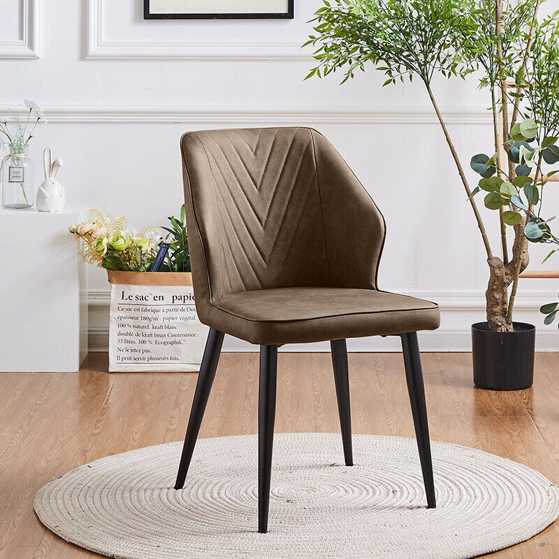 2 Pcs Dining Chair Grey Brown Cream Faux Leather Padded Chair Modern Living Room