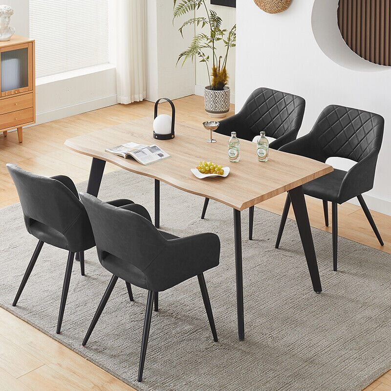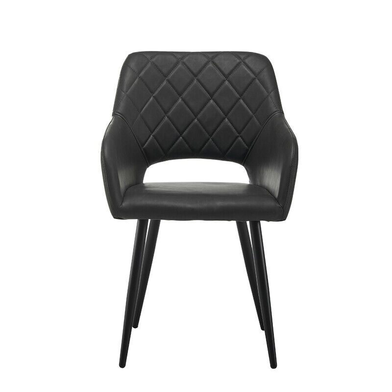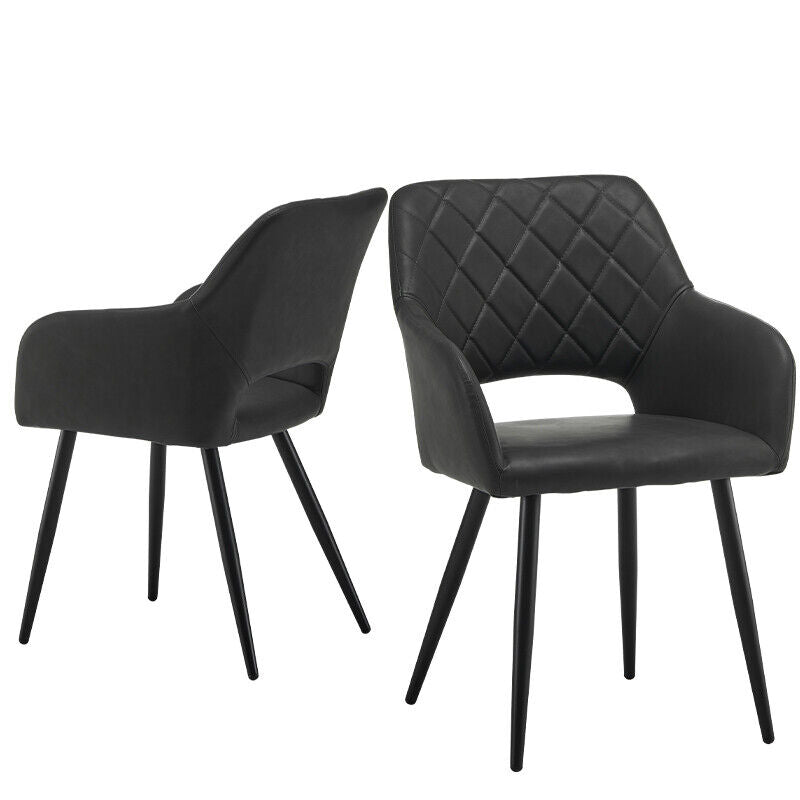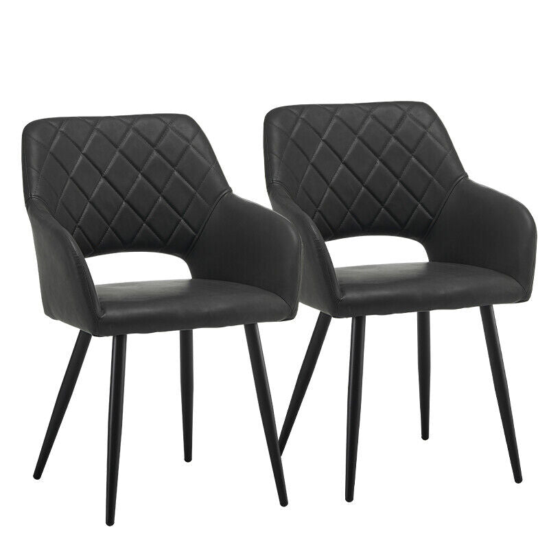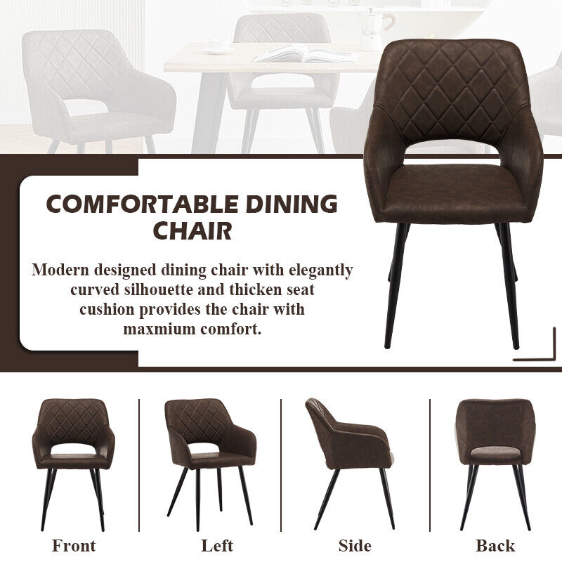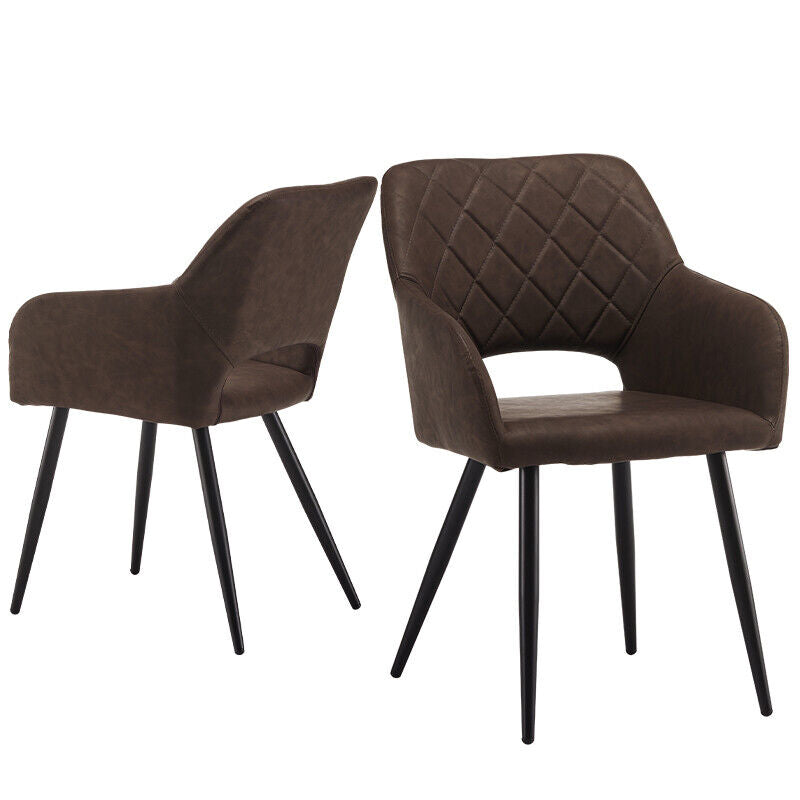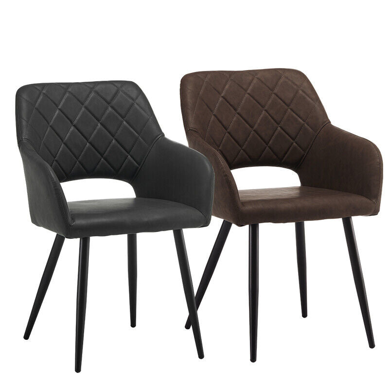 2 Pcs Dining Chairs Faux Leather Diamond Cushion Seat With Hole Brown Grey