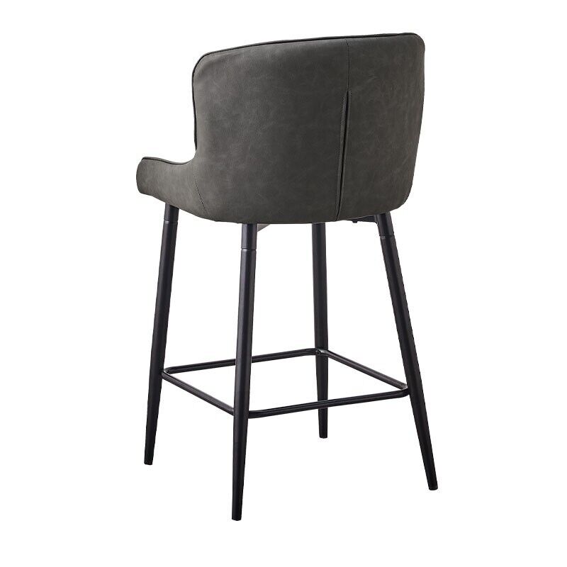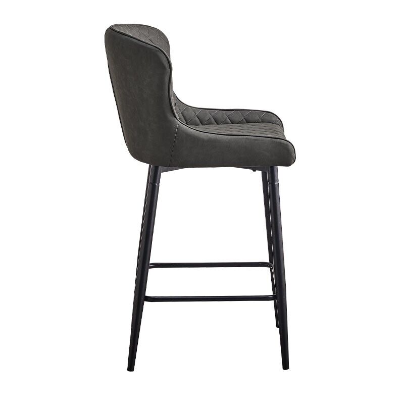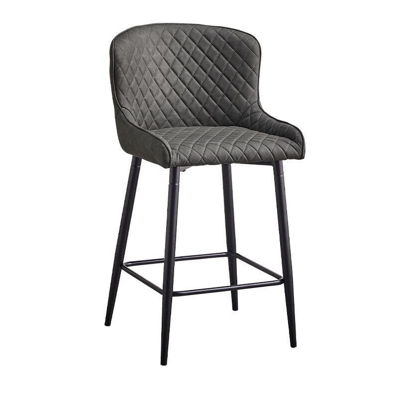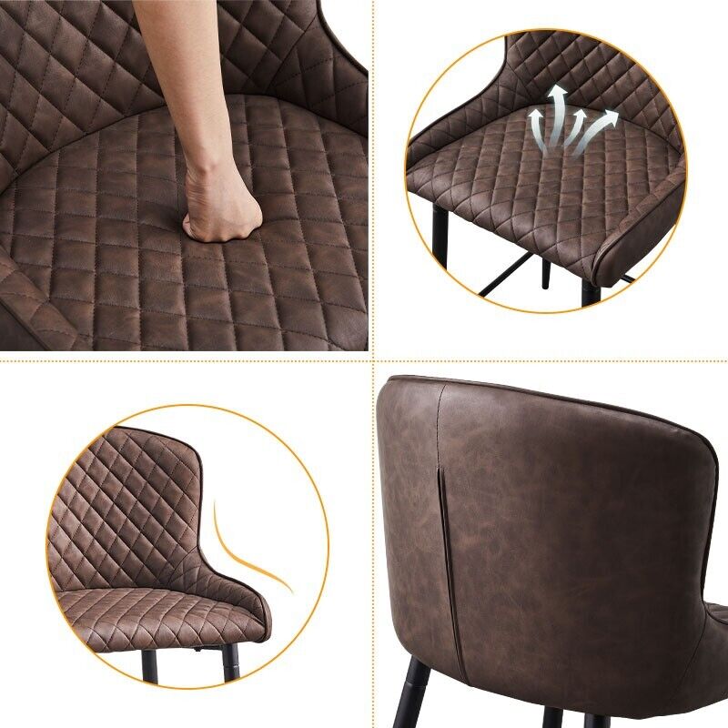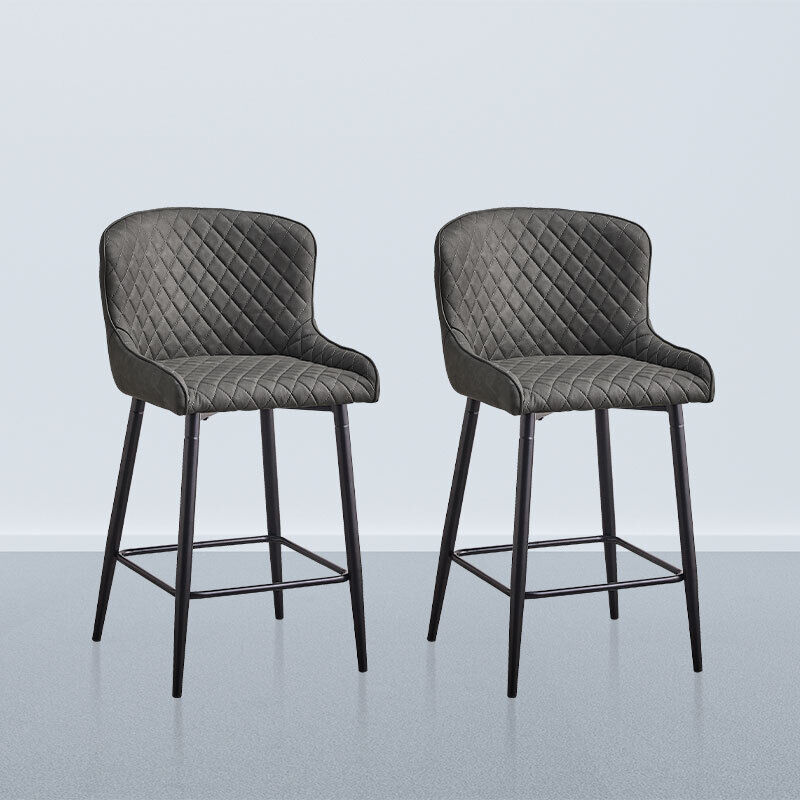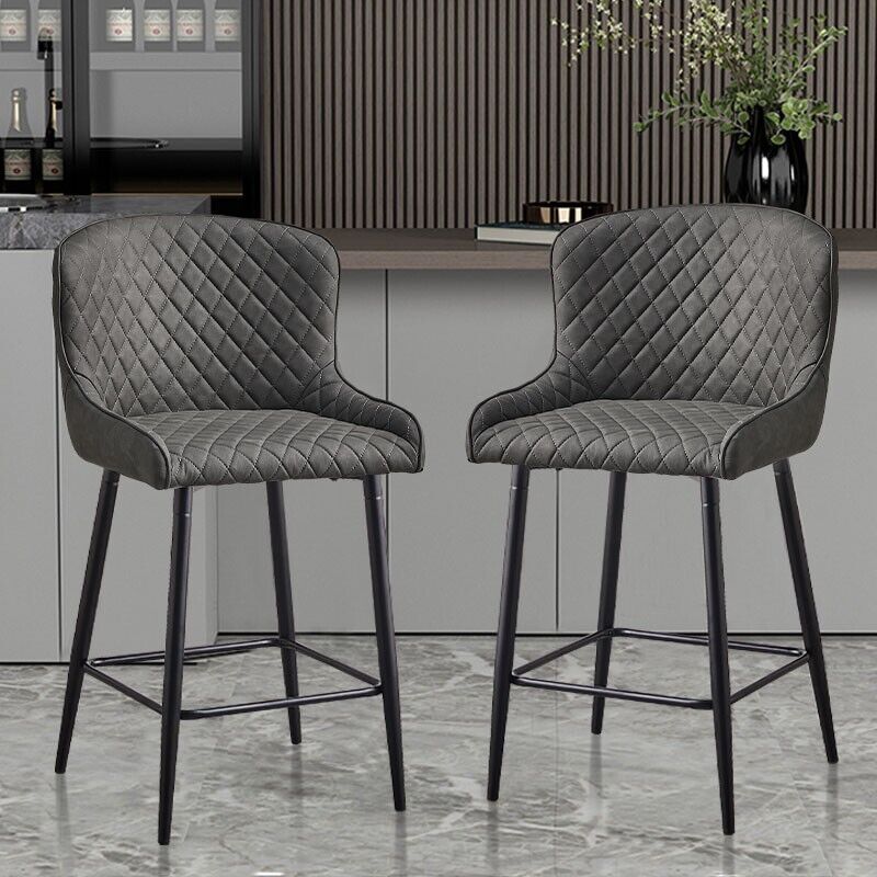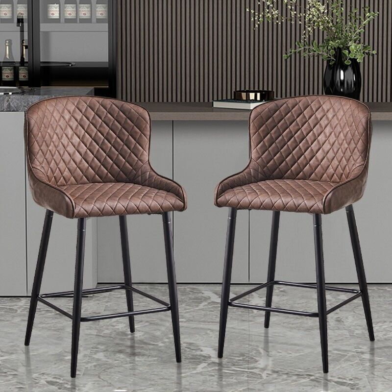 2 pcs Faux Leather Bar Stools Diamond Padded Seat Metal Legs Footrest Breakfast