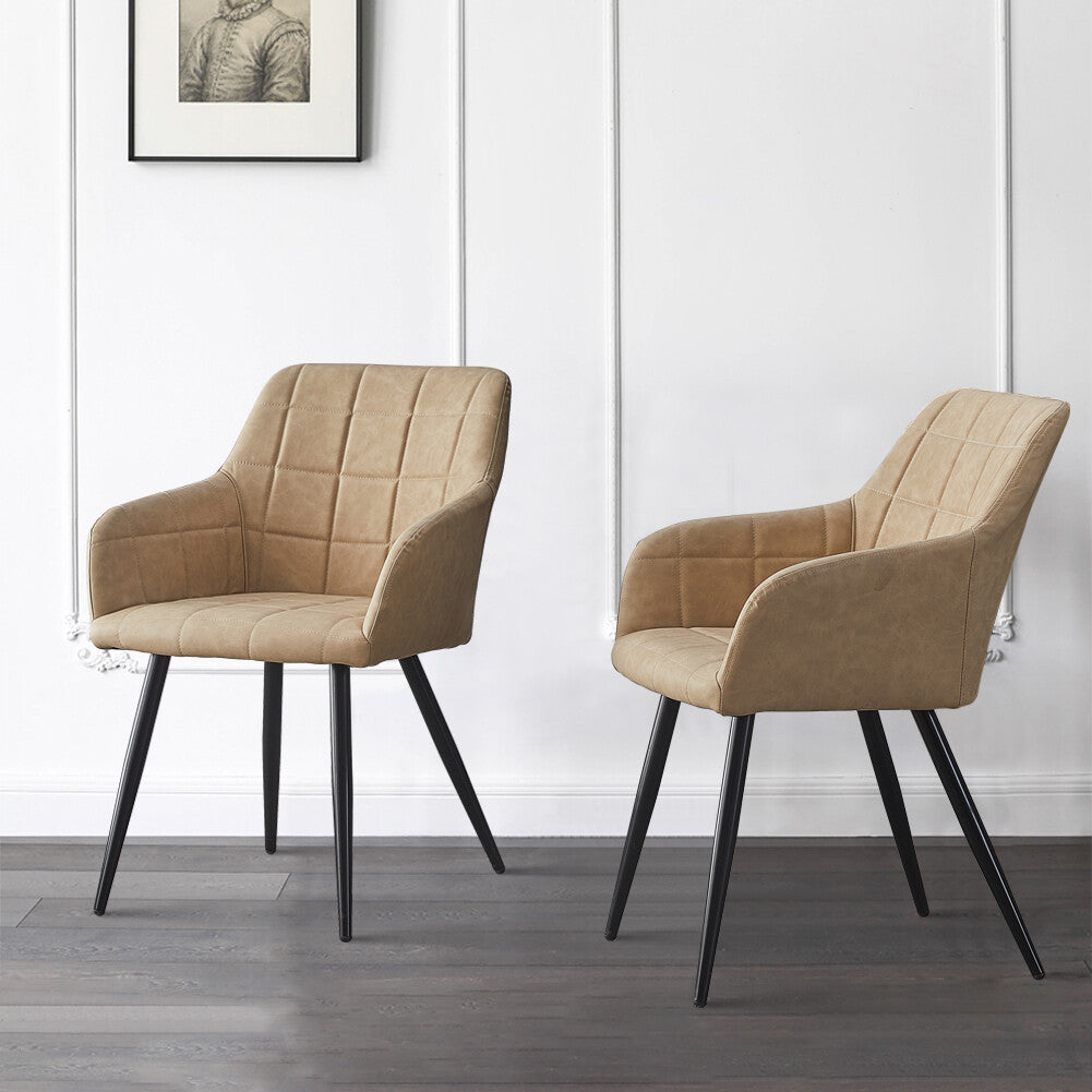 2 Pcs Faux Leather Dining Chairs Metal Legs Armchairs Office Lounge Restaurant