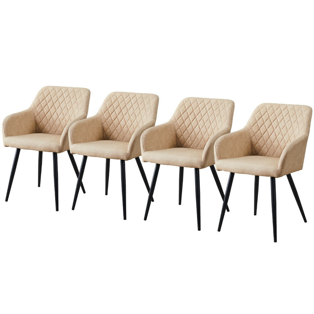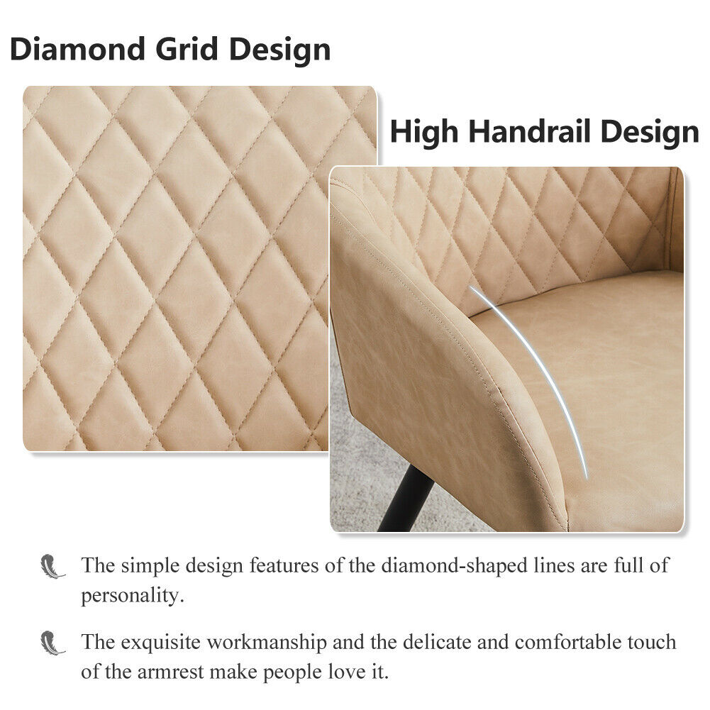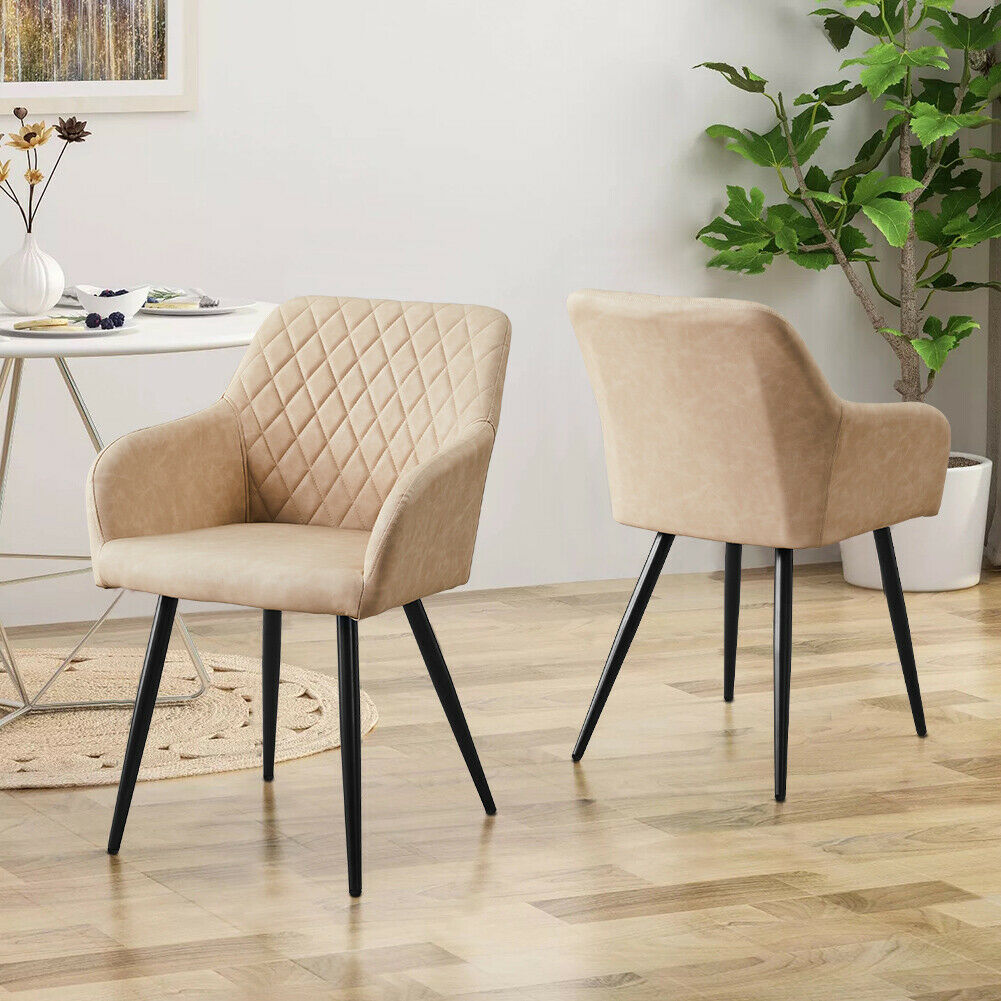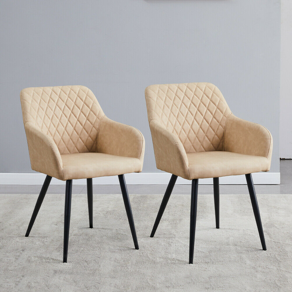 2 pcs Faux PU Dining Chairs Armchairs Armrest with Black Metal Legs Xmas Gift UK