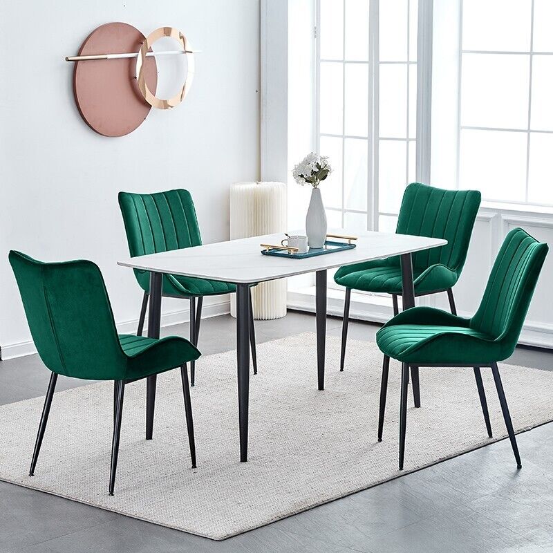 2 pcs Green Velvet Dining Chairs High Back Kitchen Dining room Chair Stripe Type